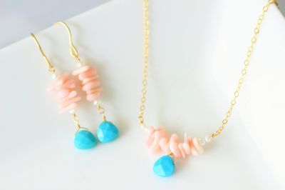 ナチュラルな淡いピンク色のサンゴを合わせて。