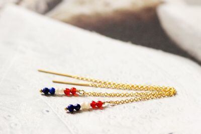 小粒の三色を並べたシンプルなライン・アメリカンピアスです。