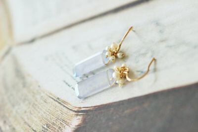 ブルーカルセドニー×淡水パール・ピアス