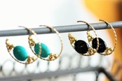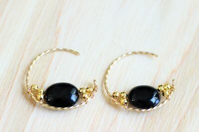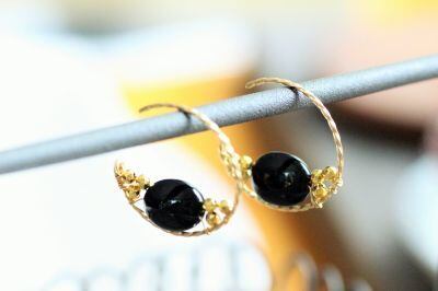 ツルッとしたオーバルのオニキスがメインのピアスです。