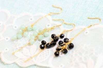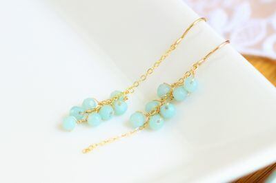 木の実のようにチェーンにぶら下がる青い実・アマゾナイトの