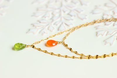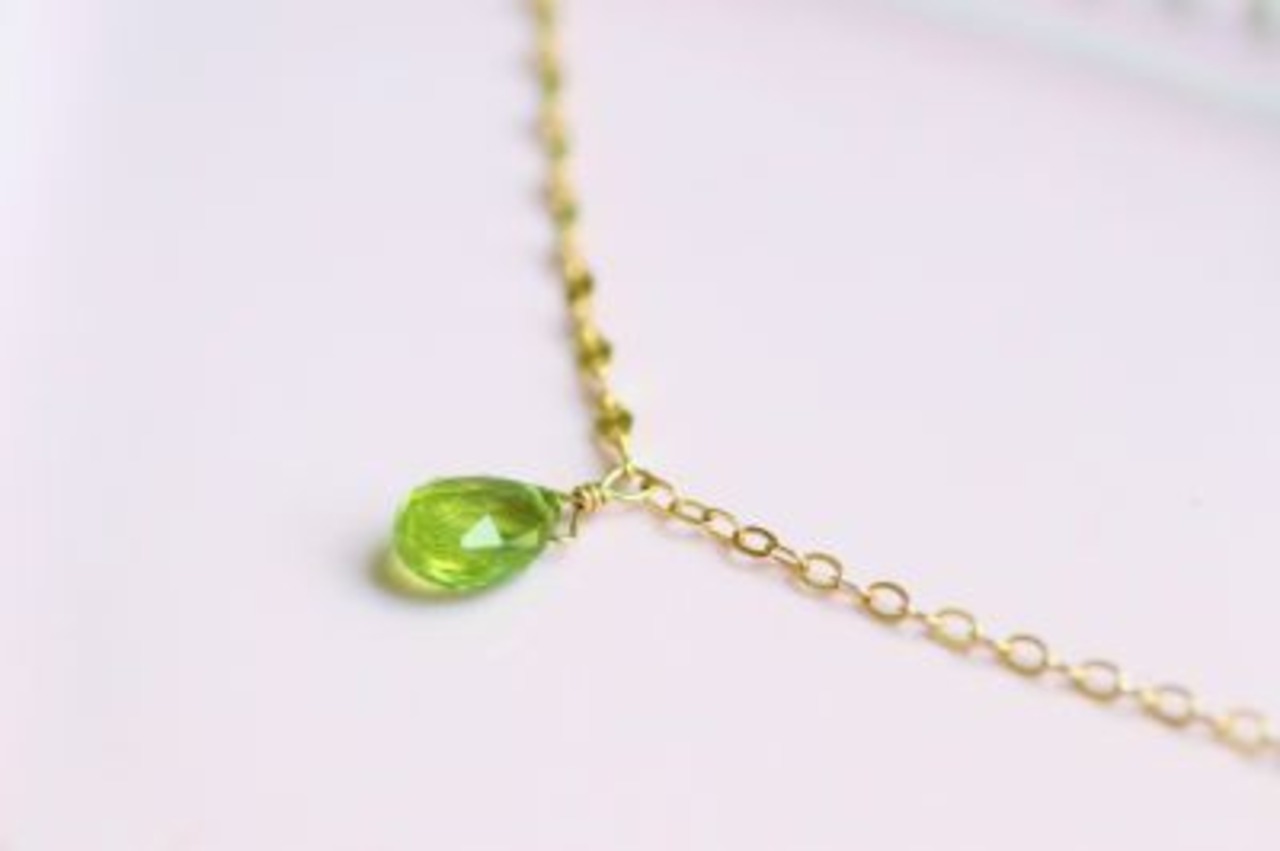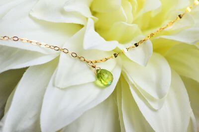 8月の誕生石でもあるペリドットの一粒ブレスレット。
