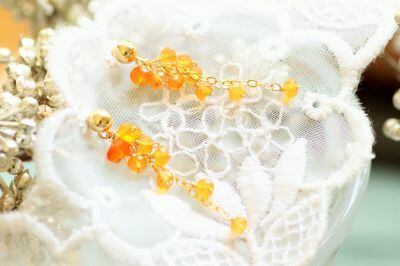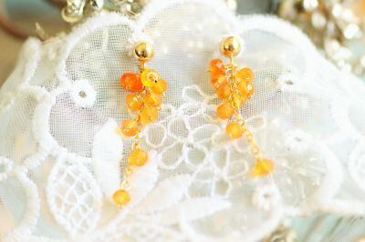 ビタミンカラー・オレンジ色のボタンカットの房が耳元でキラキラと揺れて輝きます。