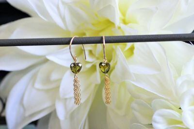 オリーブグリーンの、キュービックジルコニアのハート型のピアスです。