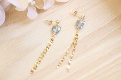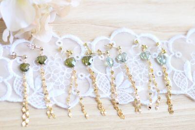 美しくカットが施され、耳元で花びらの様にひらひらと繊細に2種のデザインチェーンと共に輝きます。