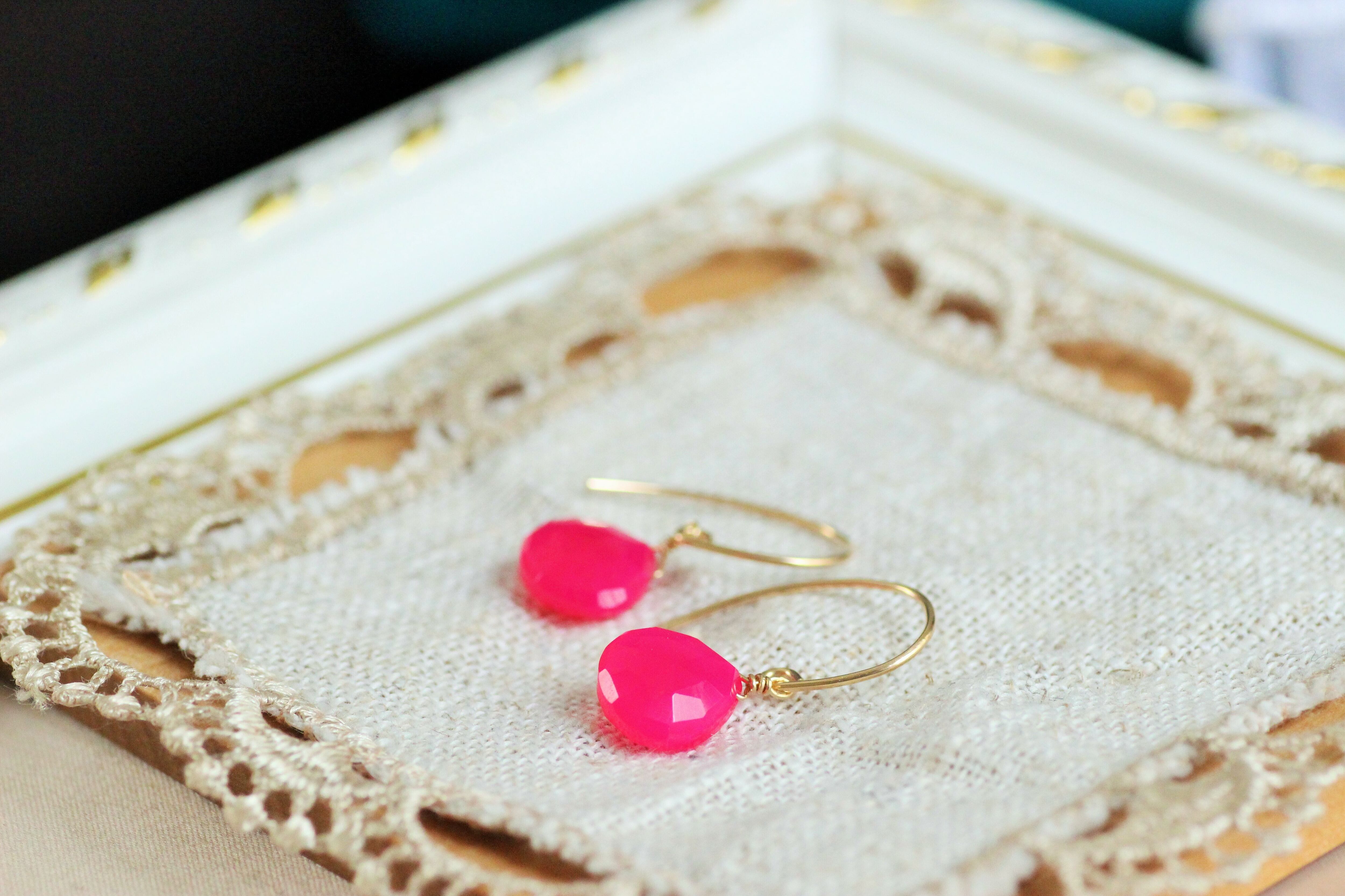 目を引く発色が美しい、ピンクカルセドニーの一粒ピアスです。