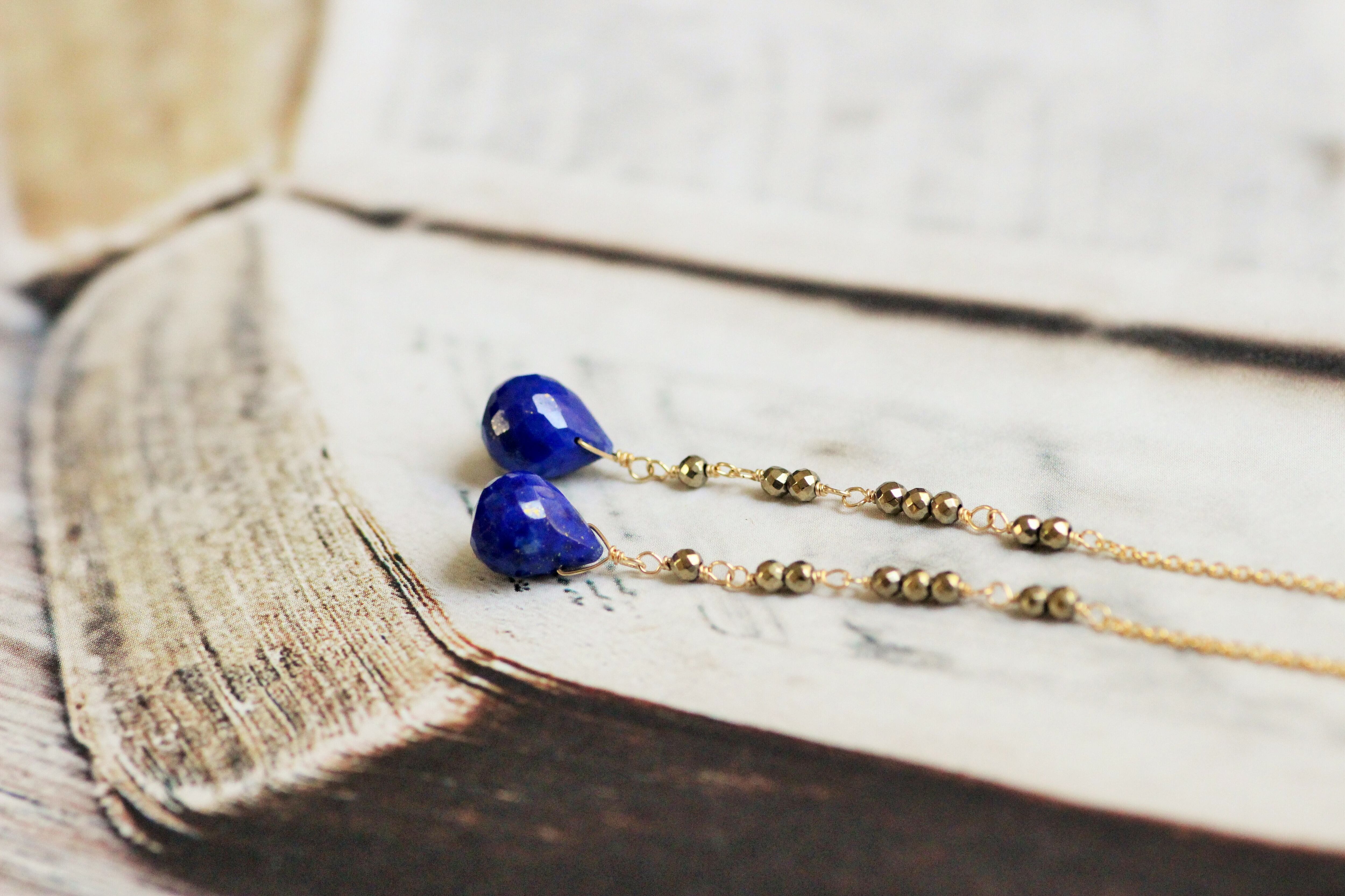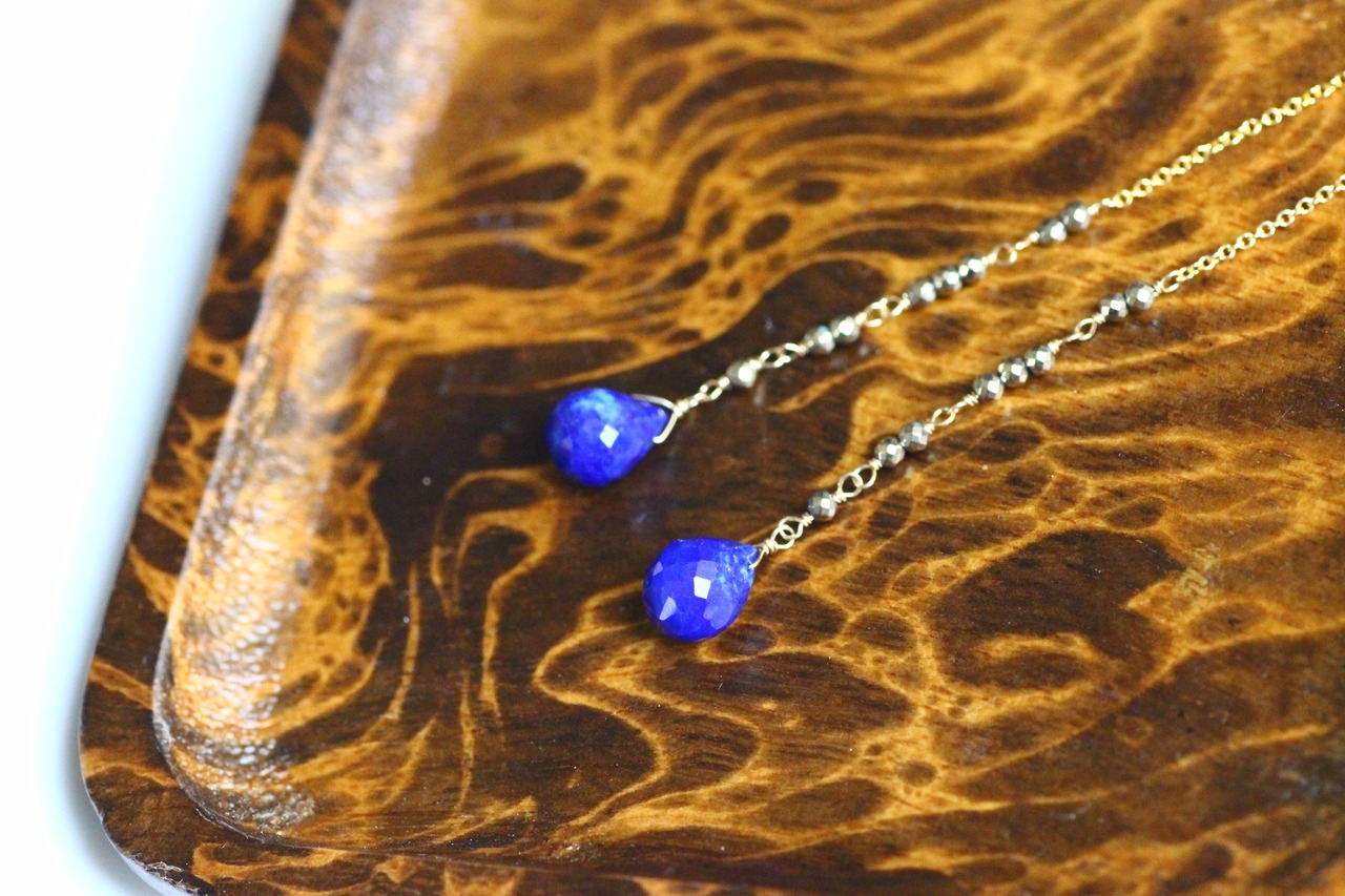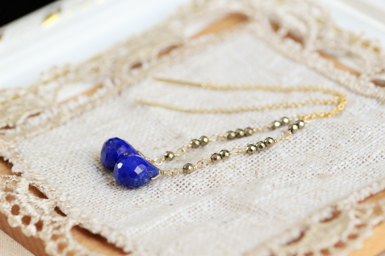 ラピスラズリ×アンティークゴールド・アメリカンピアス