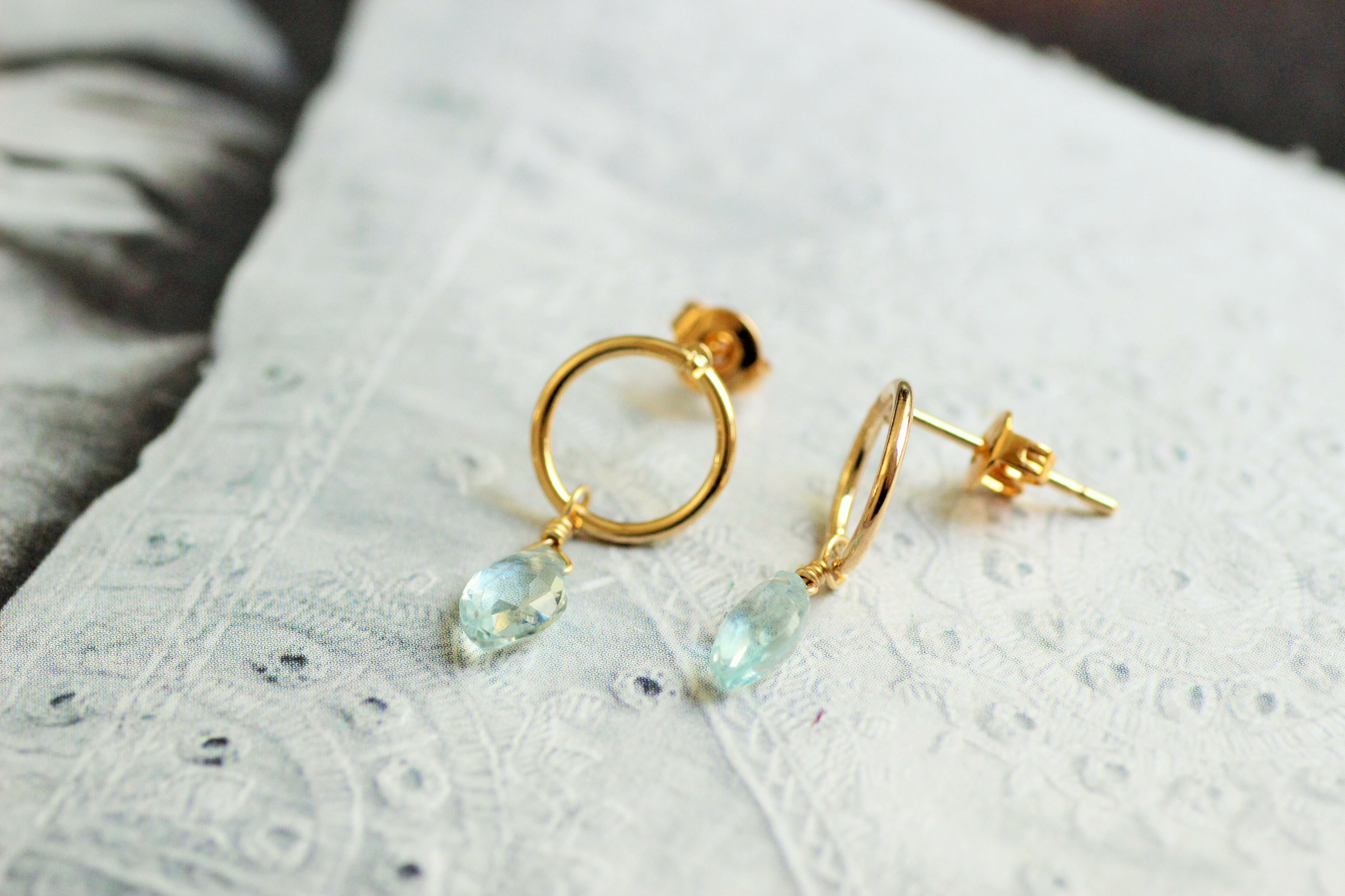 海の輝きアクアマリン・丸ピアス