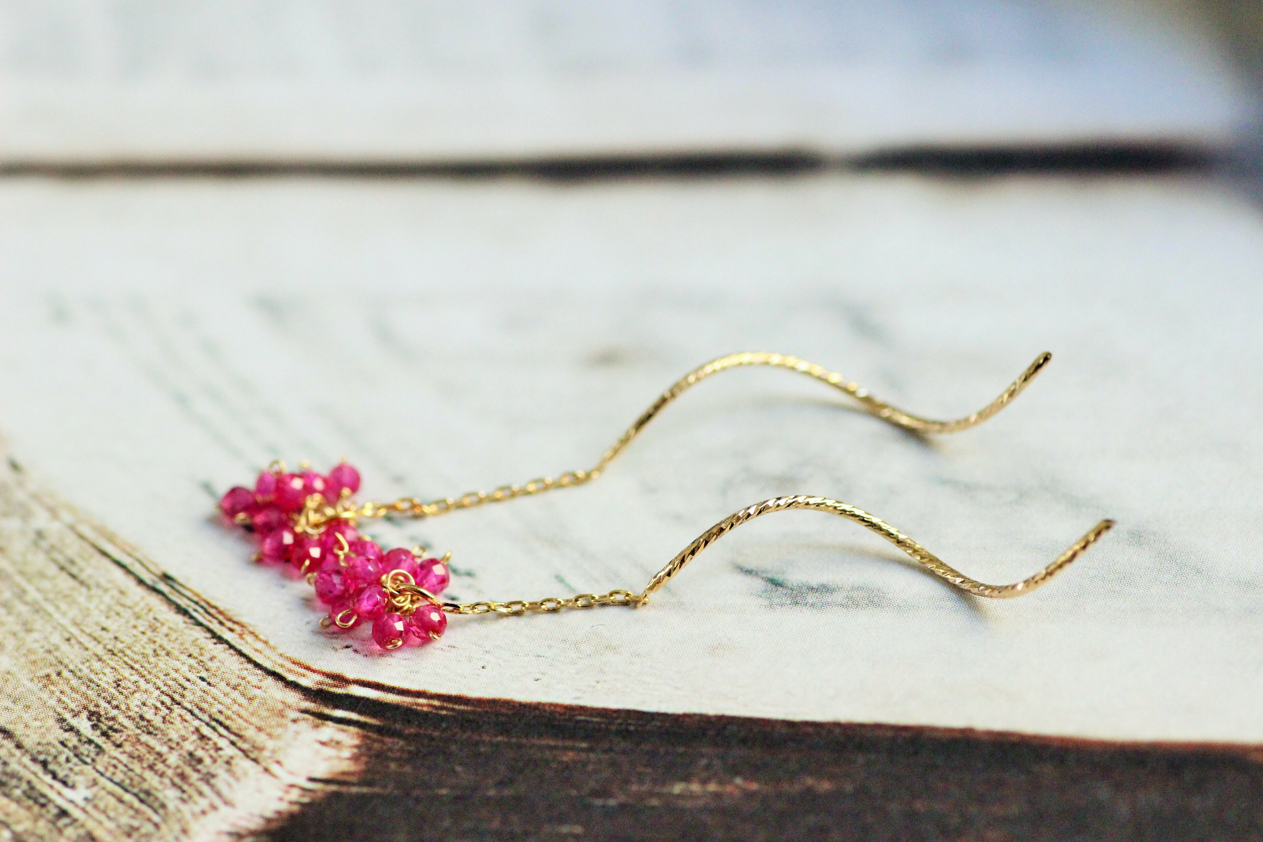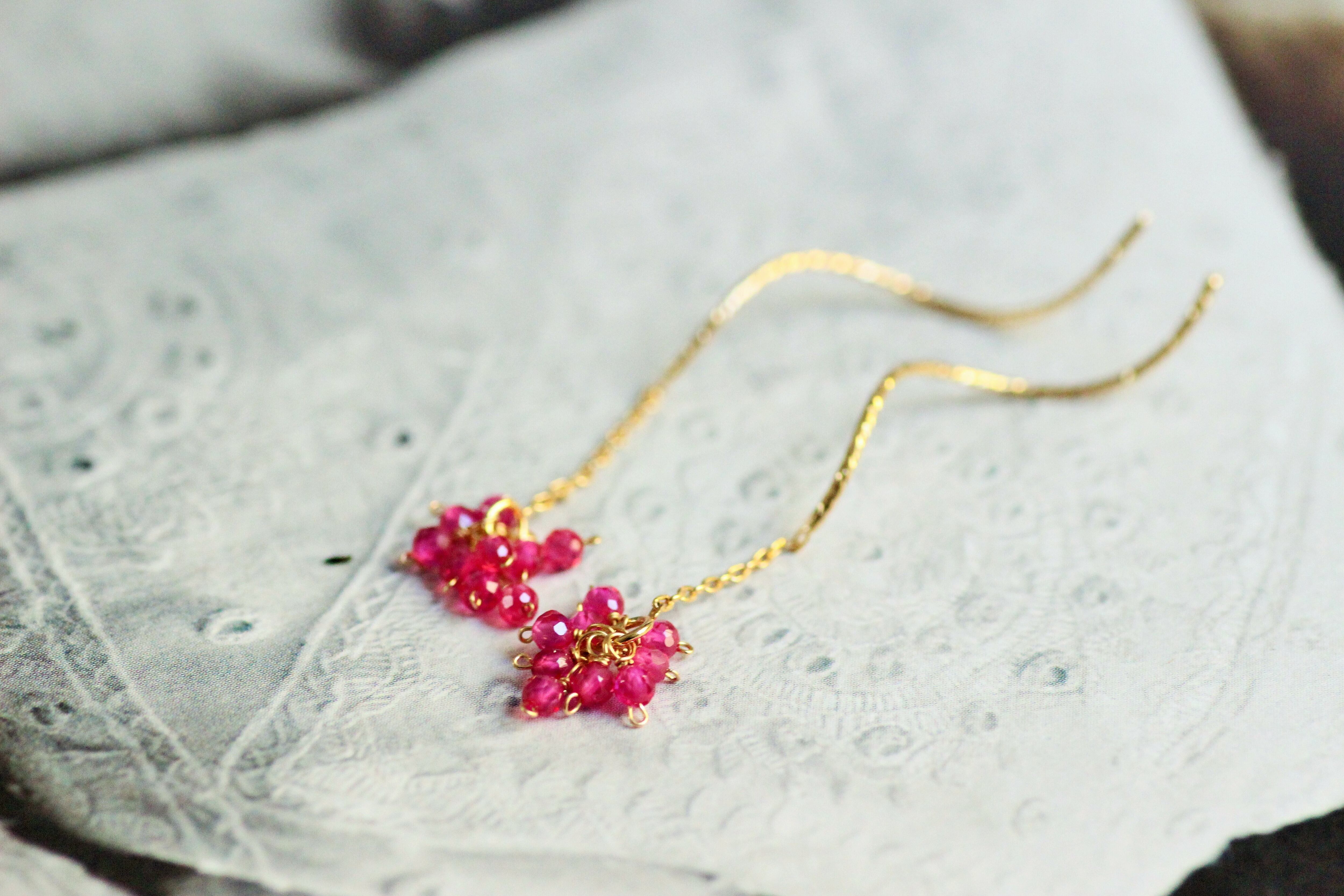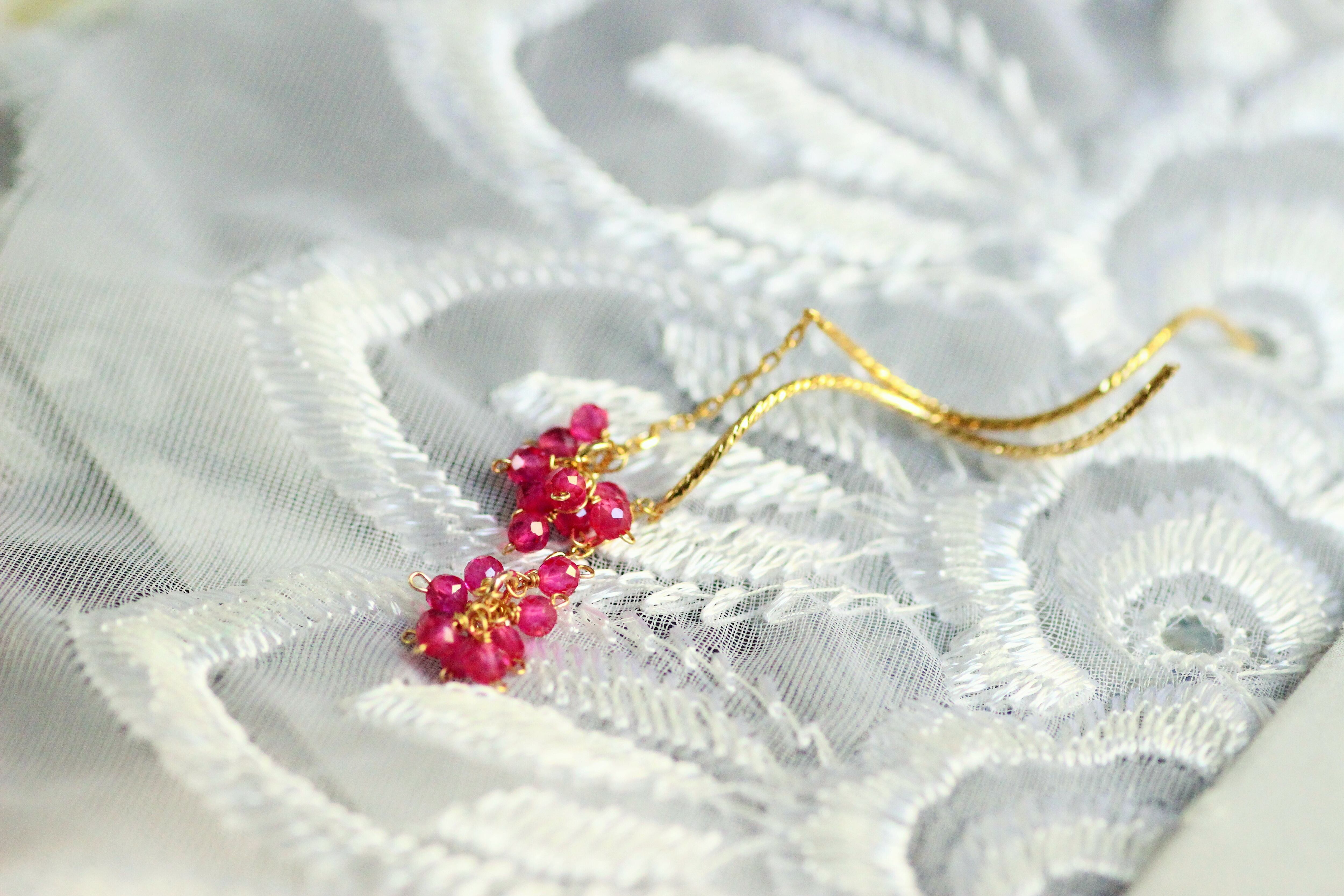小さくても高級感のある赤い小粒・ルビーのアメリカンピアスです。