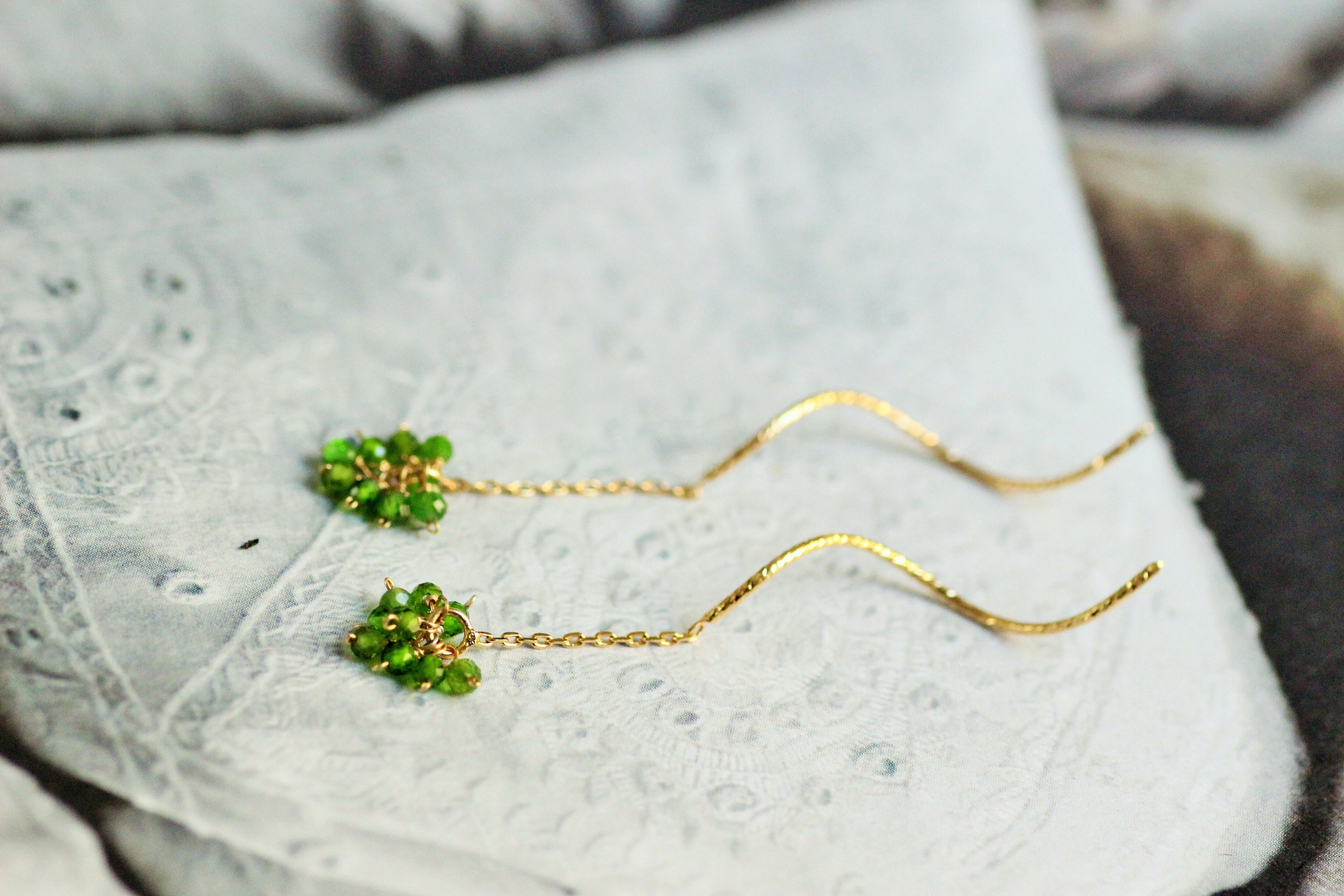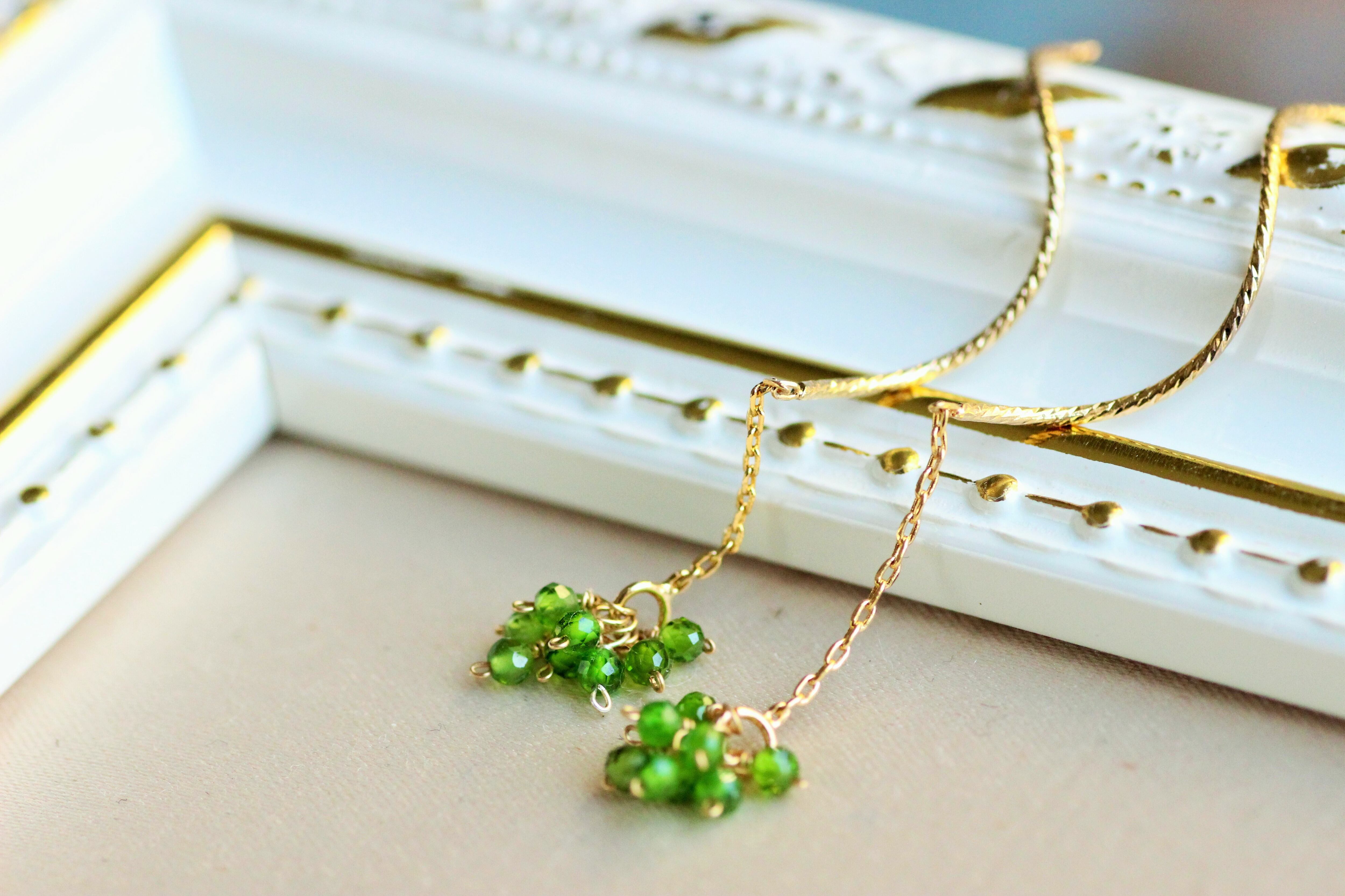 小さくても高級感のあるグリーンの小粒・クロムダイオプサイトのアメリカンピアスです。