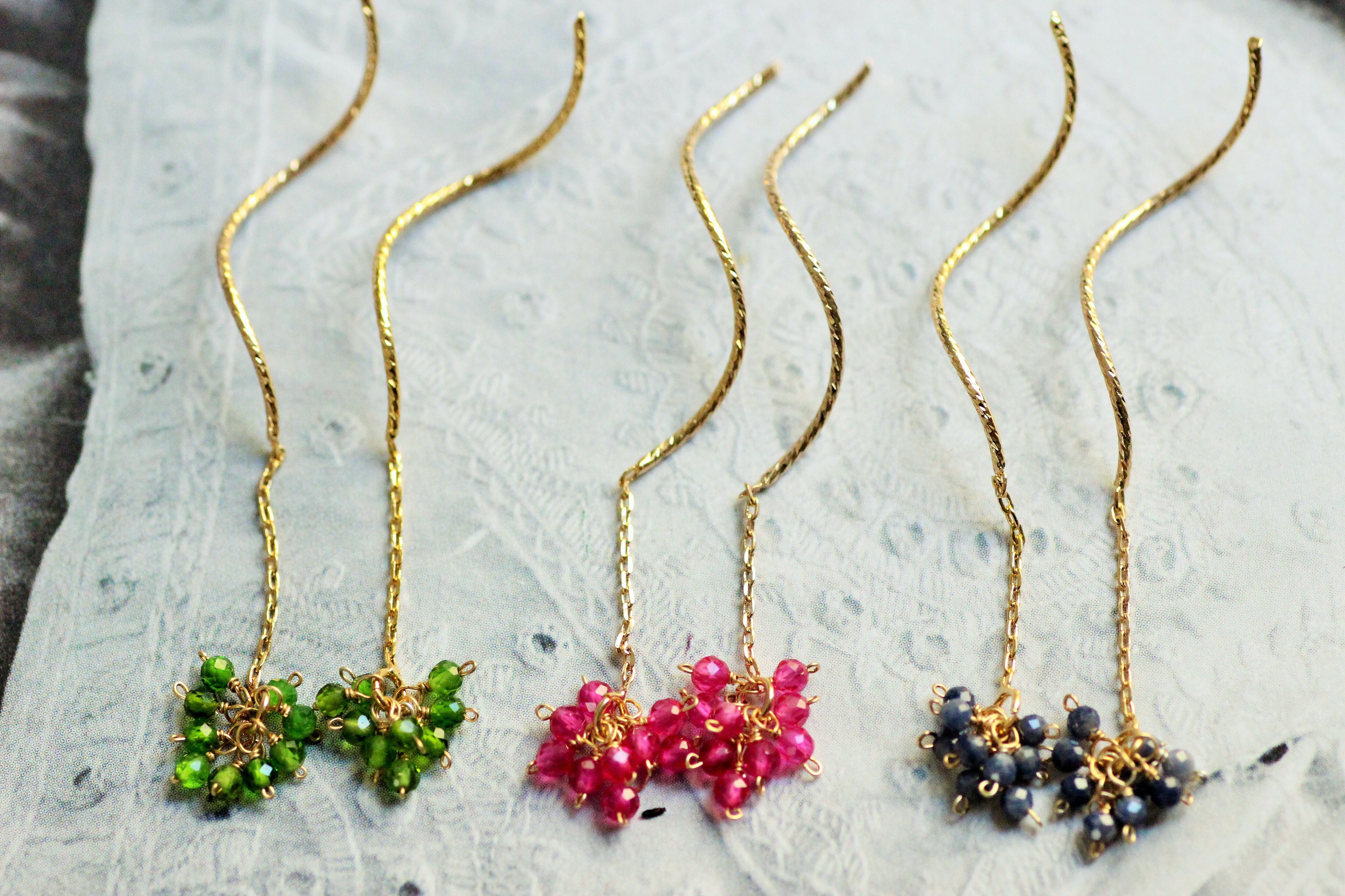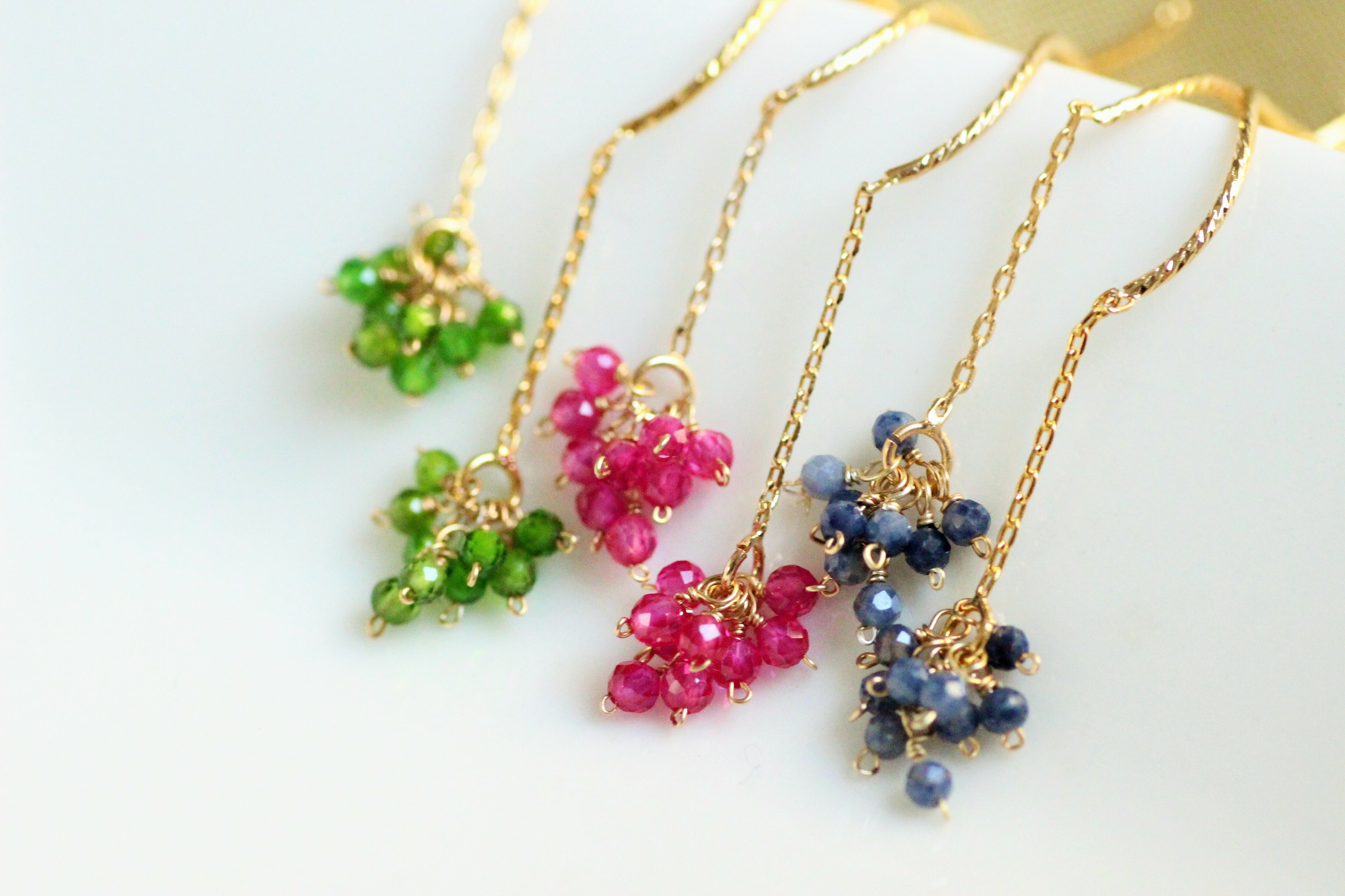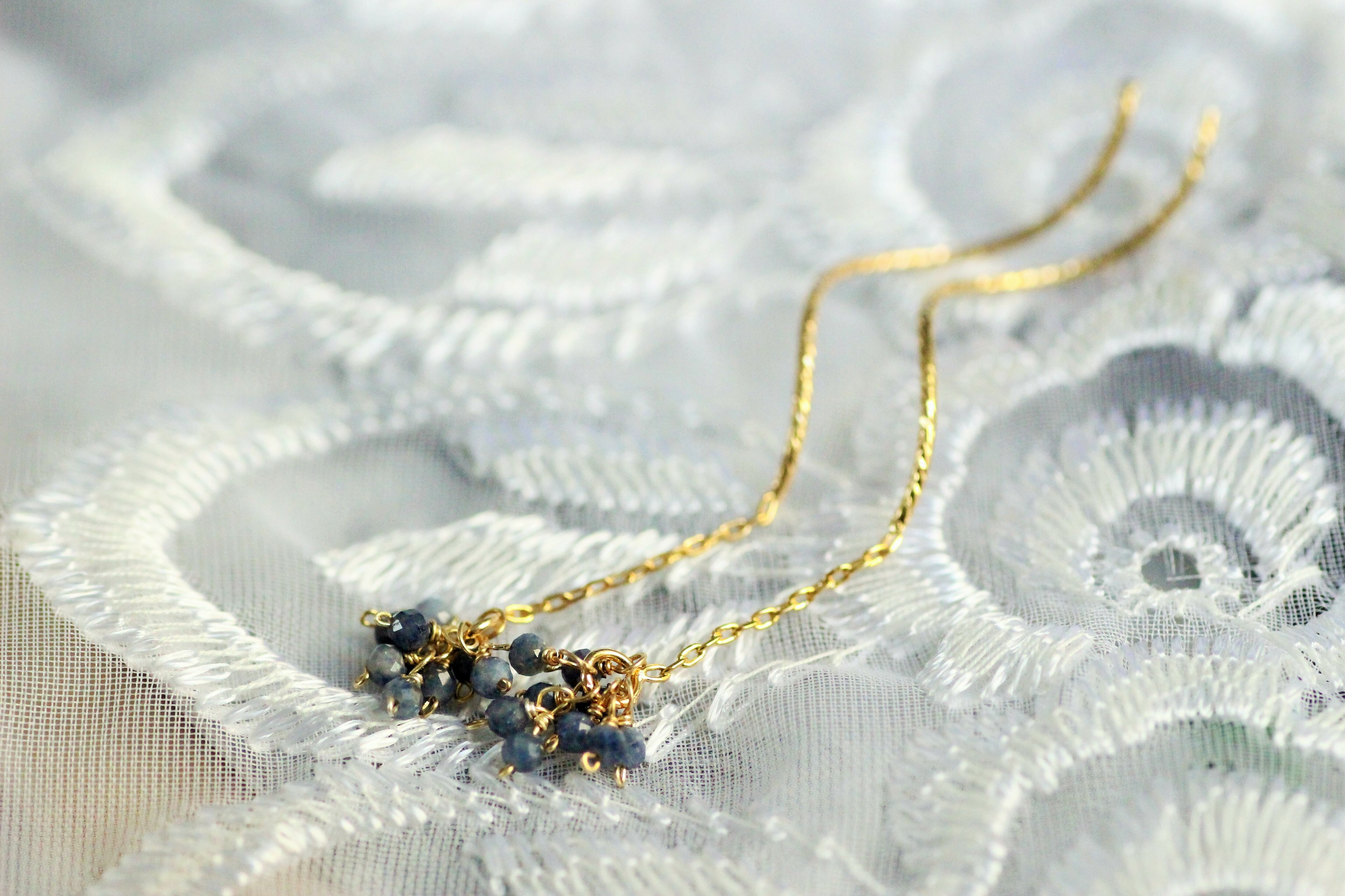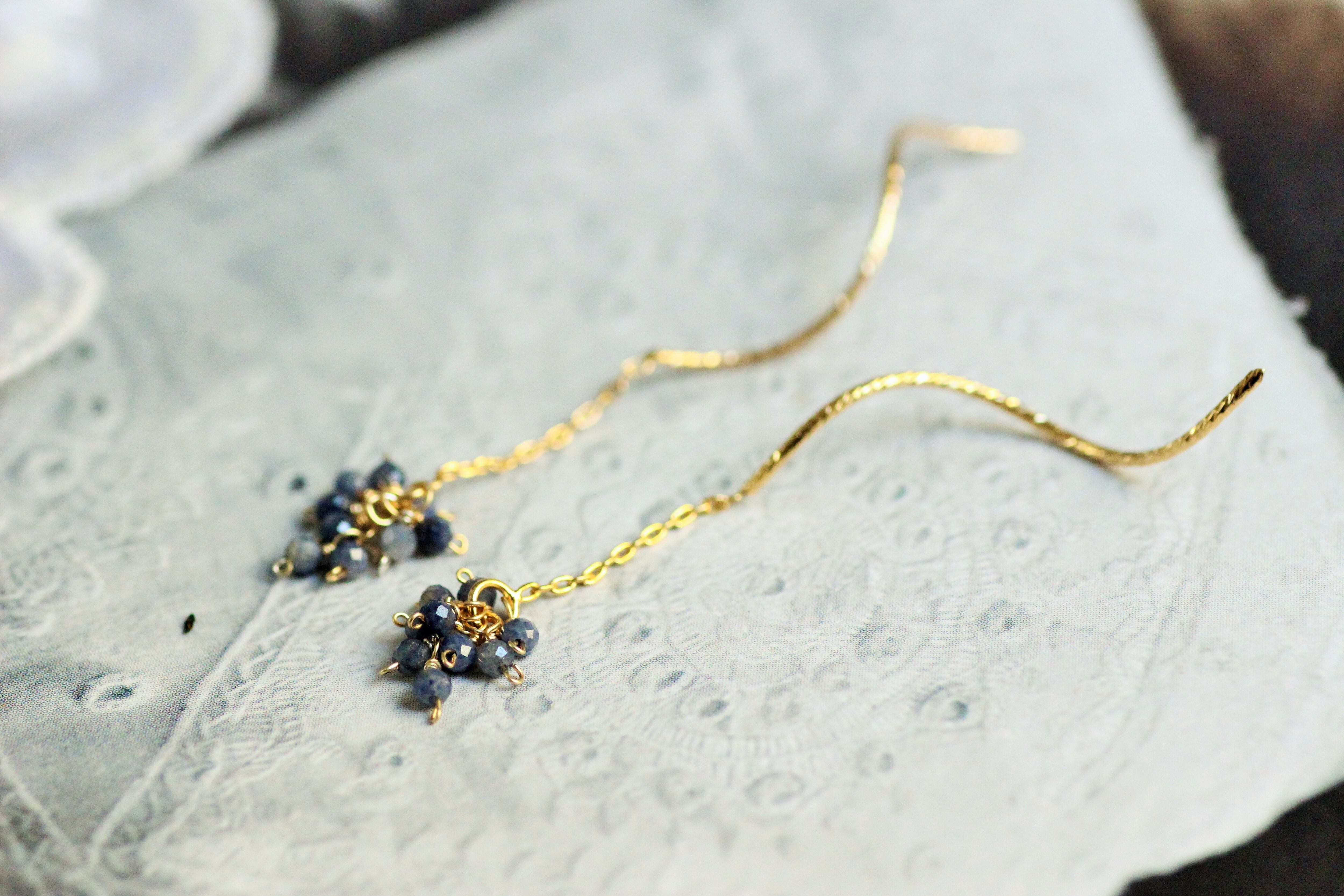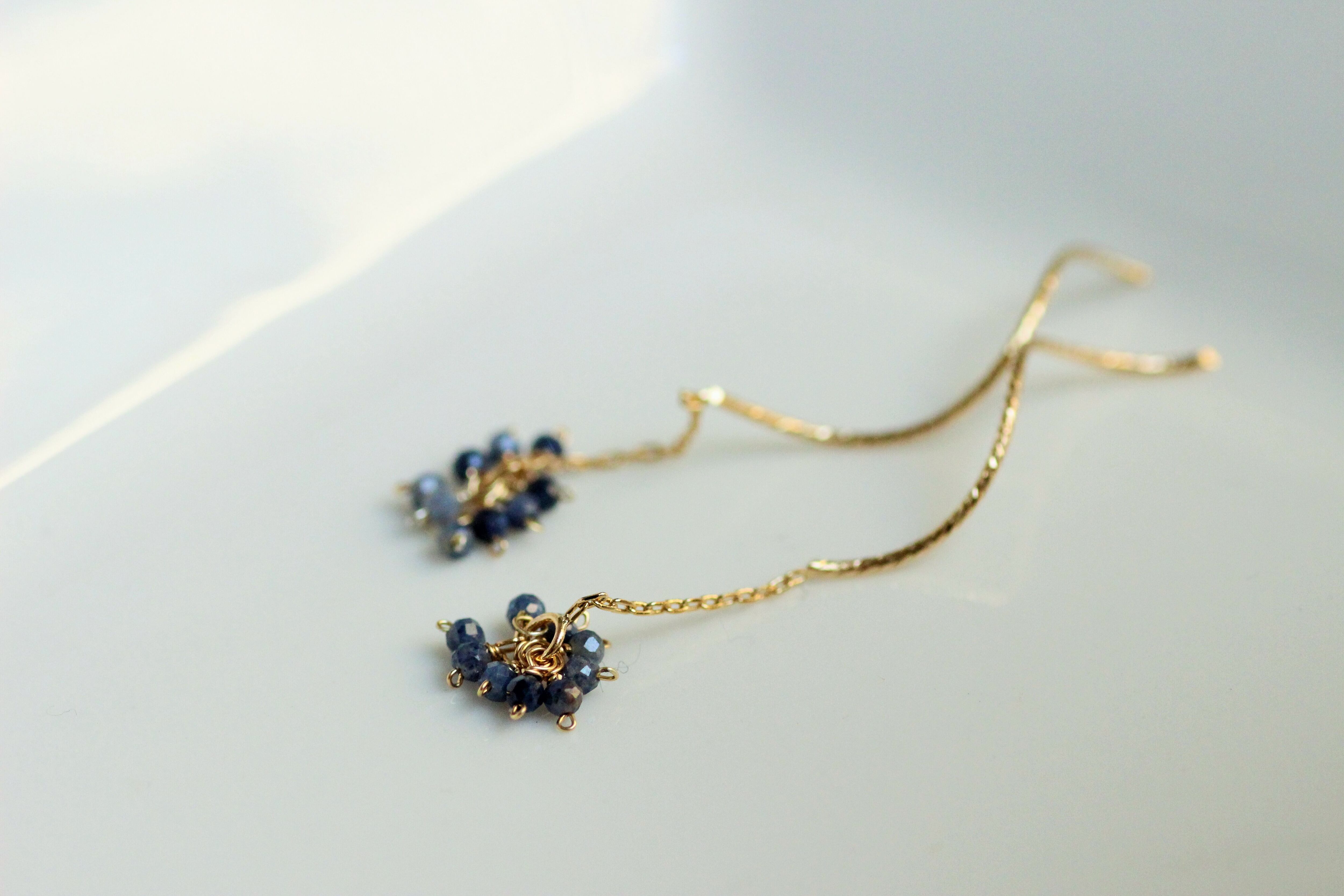 小さくても高級感のあるブルーの小粒・サファイアのアメリカンピアスです。
