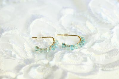 キラキラと輝くブルートパーズを耳元でお楽しみください。