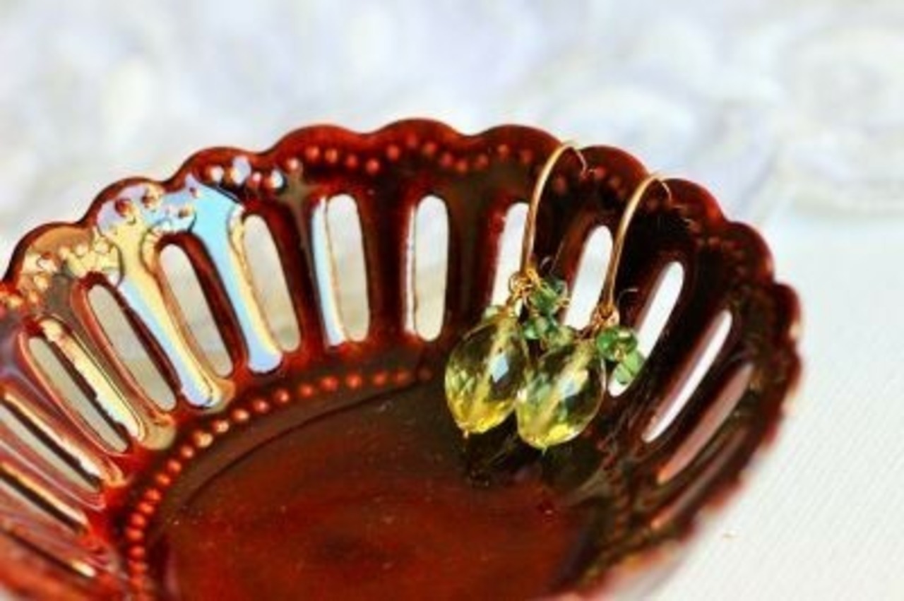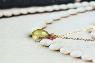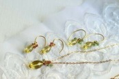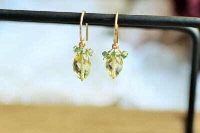 上質な宝石質のレモンクォーツを小さなグリーントルマリンで飾ったピアスです。