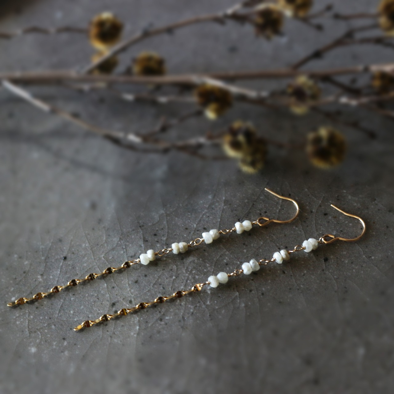 ロング(約8.0cm)ピアスは、シンプルな装いのアクセントとして活躍してくれそうです!