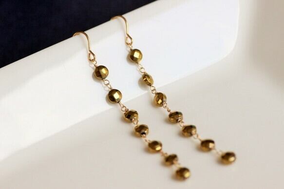 コインカットを繋げたロングピアスです。