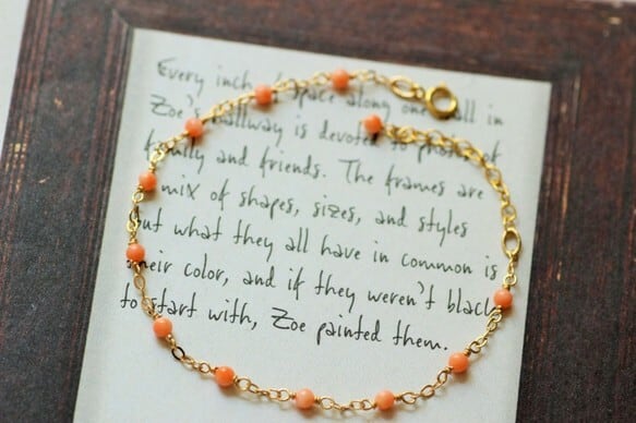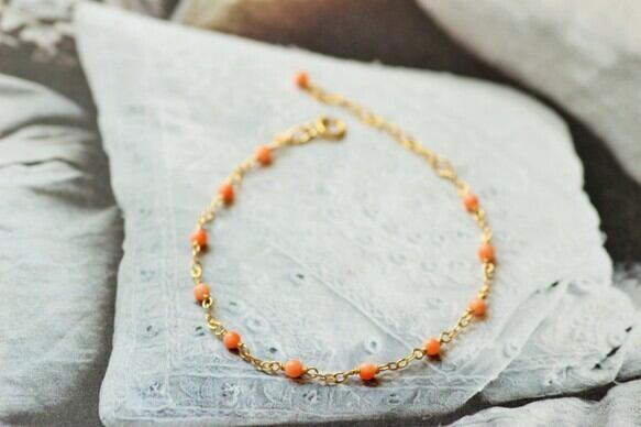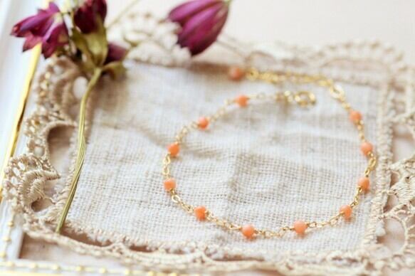 愛らしいコーラルピンクのPK珊瑚を丁寧に繋げた、