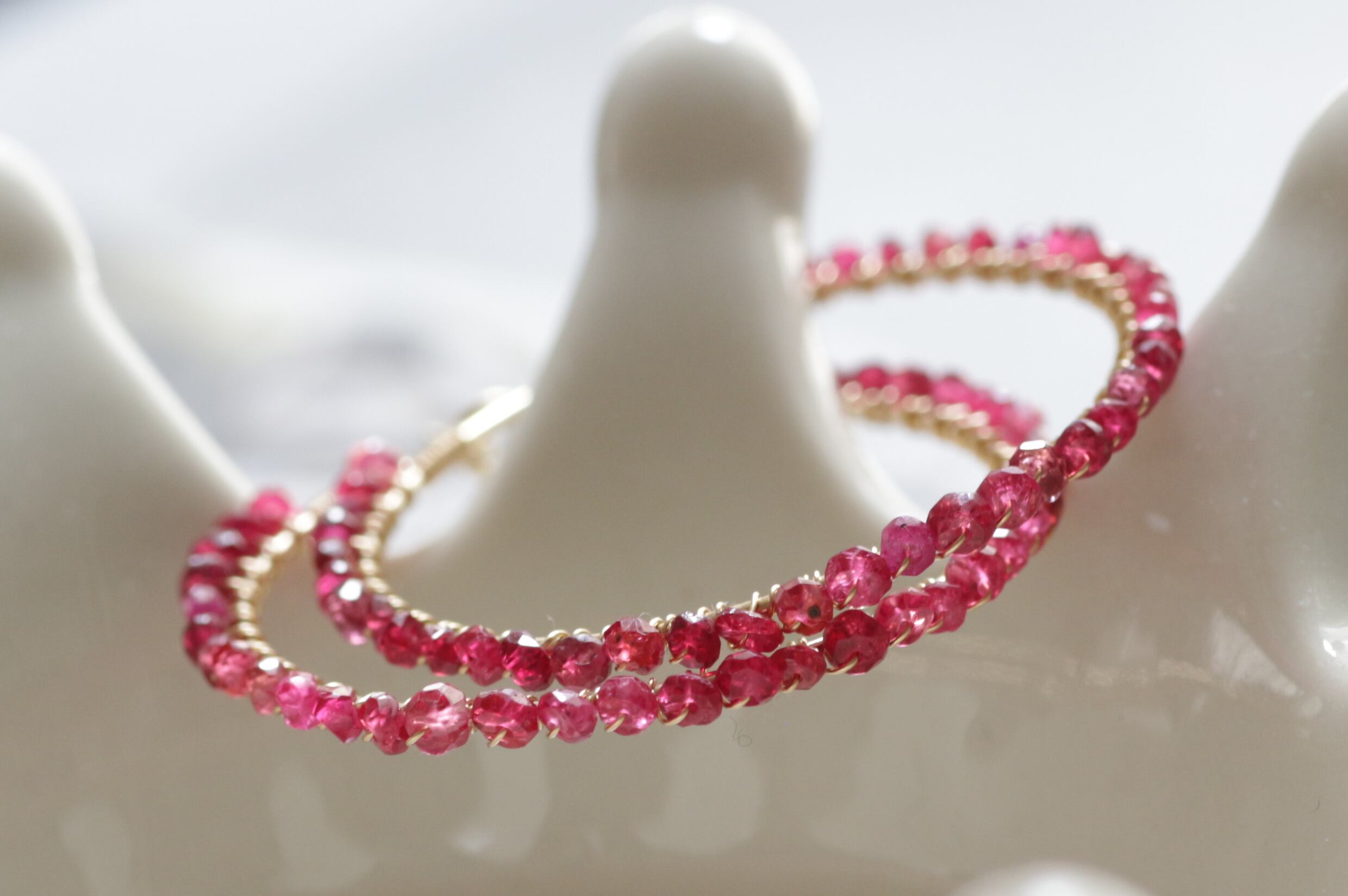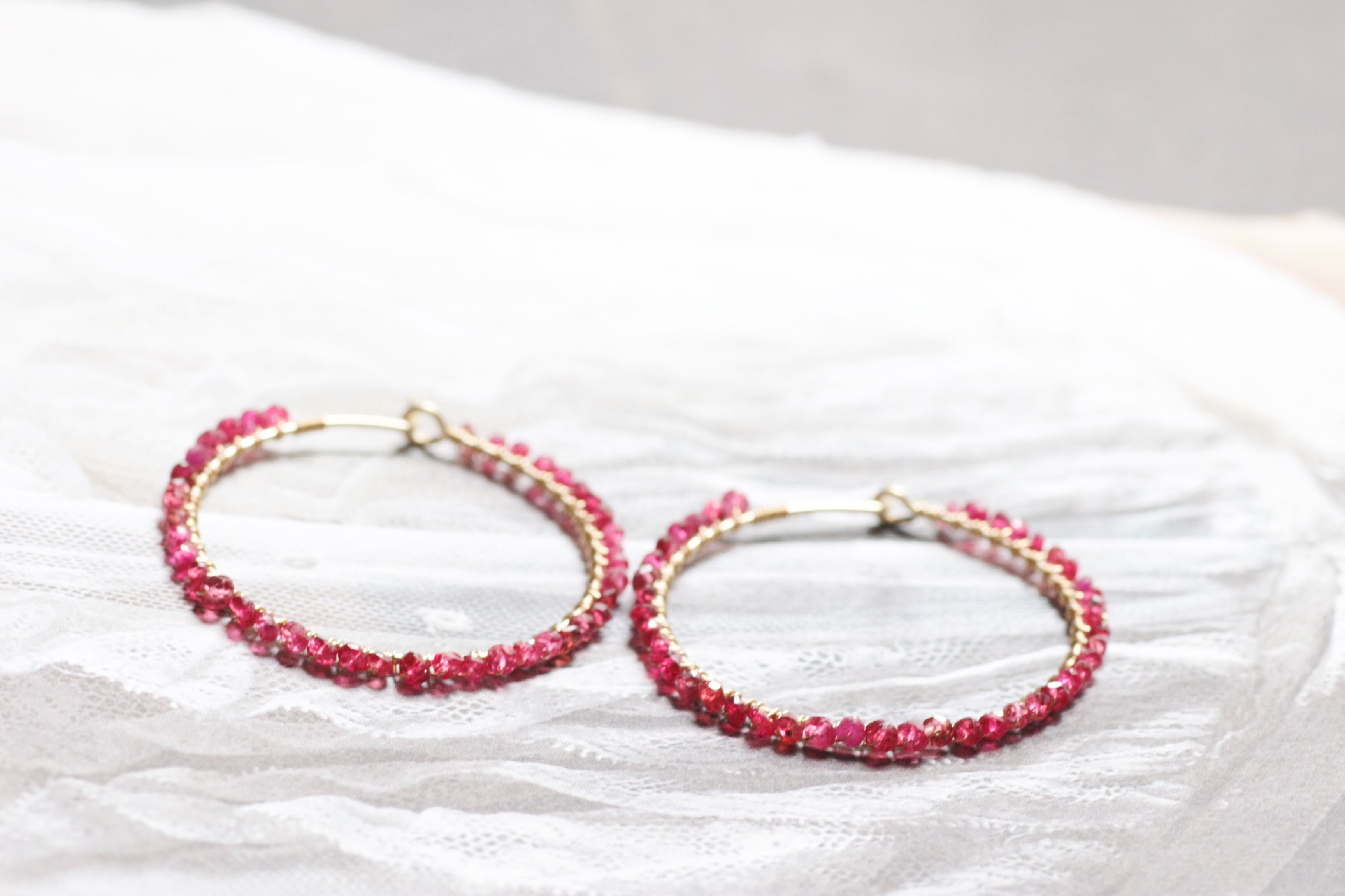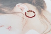 落ち着いた赤色の輝きが、シックな装いのアクセントとして耳元を飾ってくれそうです。