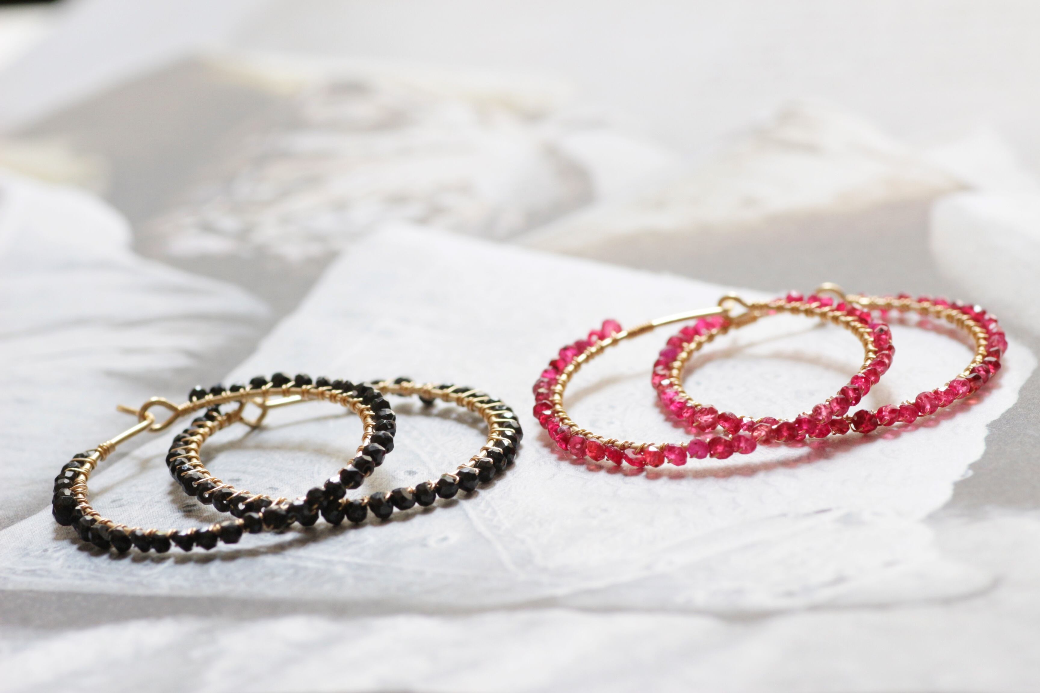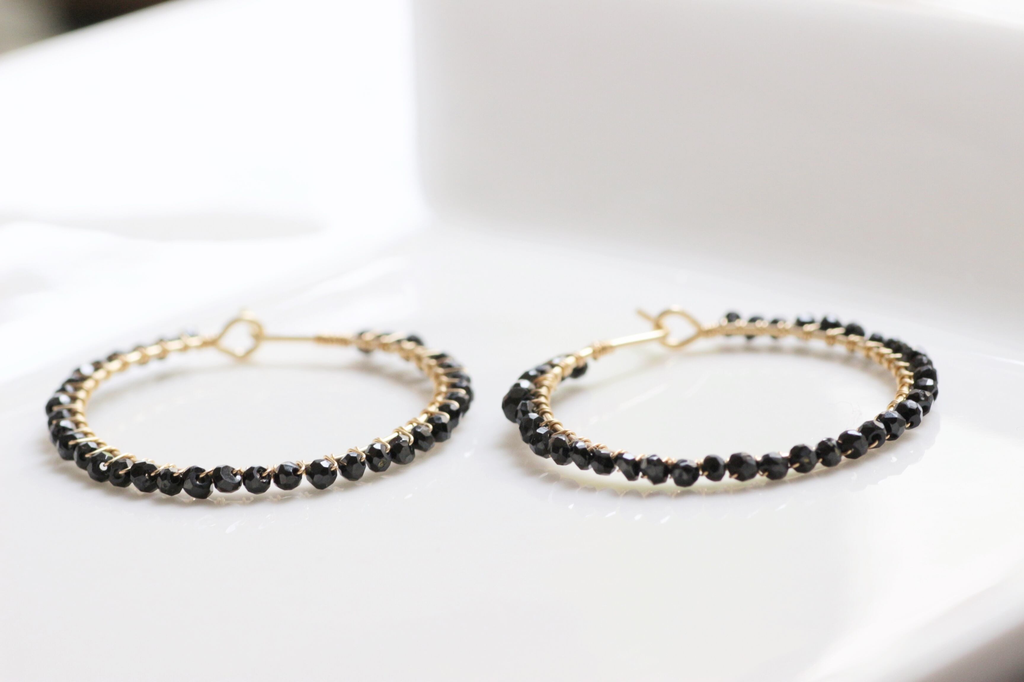 強めの黒い艶やかな輝きが、シックな装いのアクセントとして耳元を飾ってくれそうです。