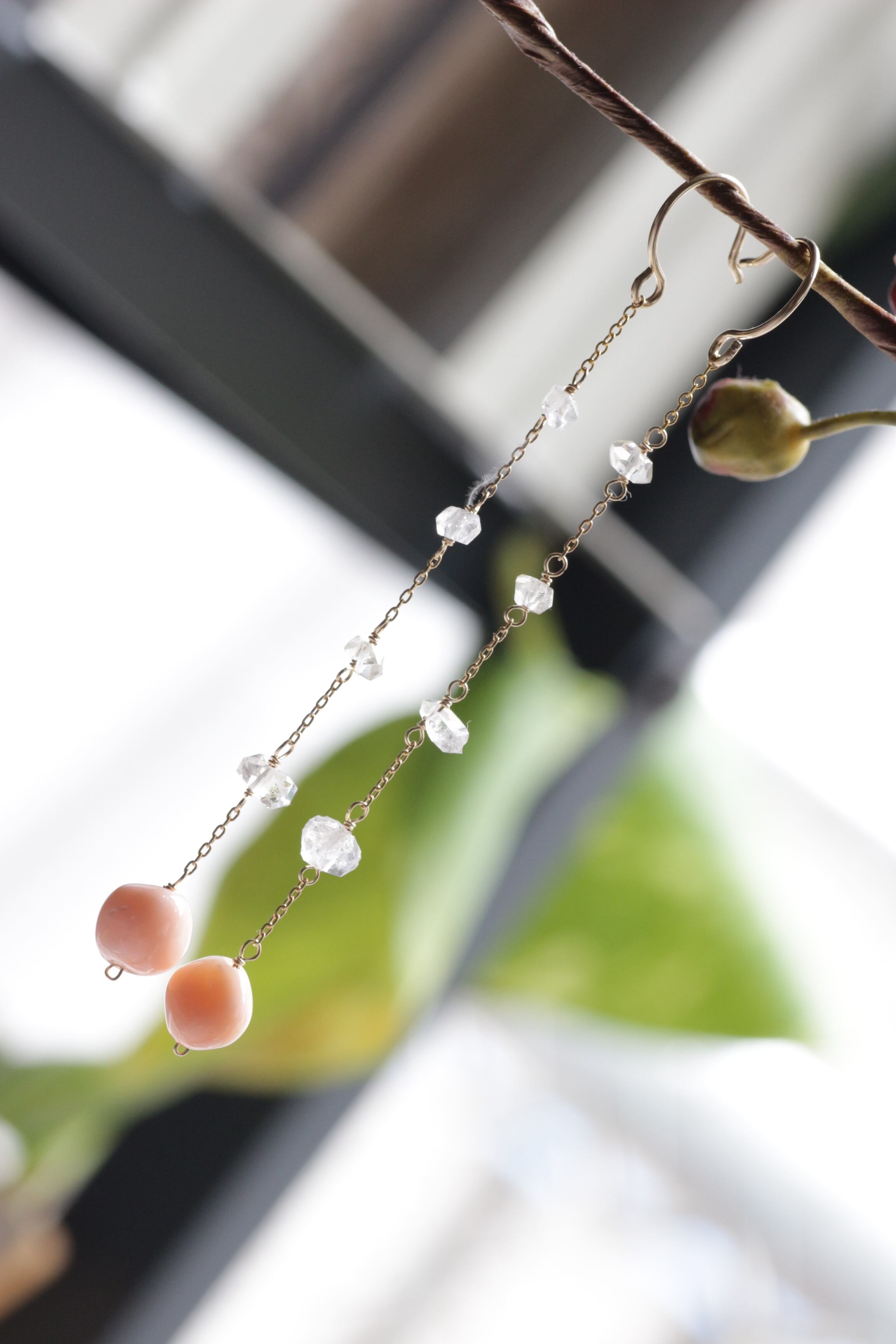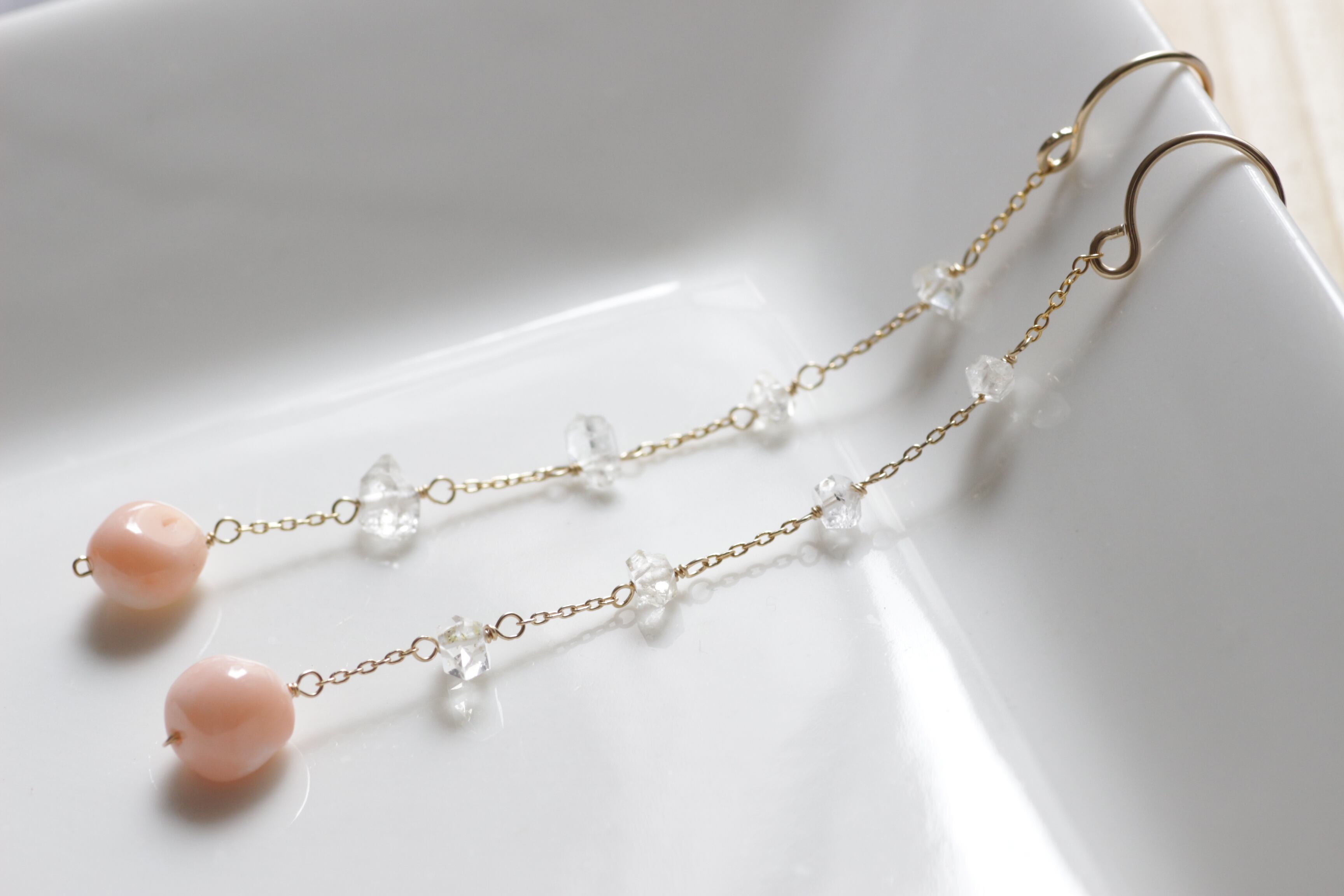 PK珊瑚×ハーキマーDia・ロングピアス