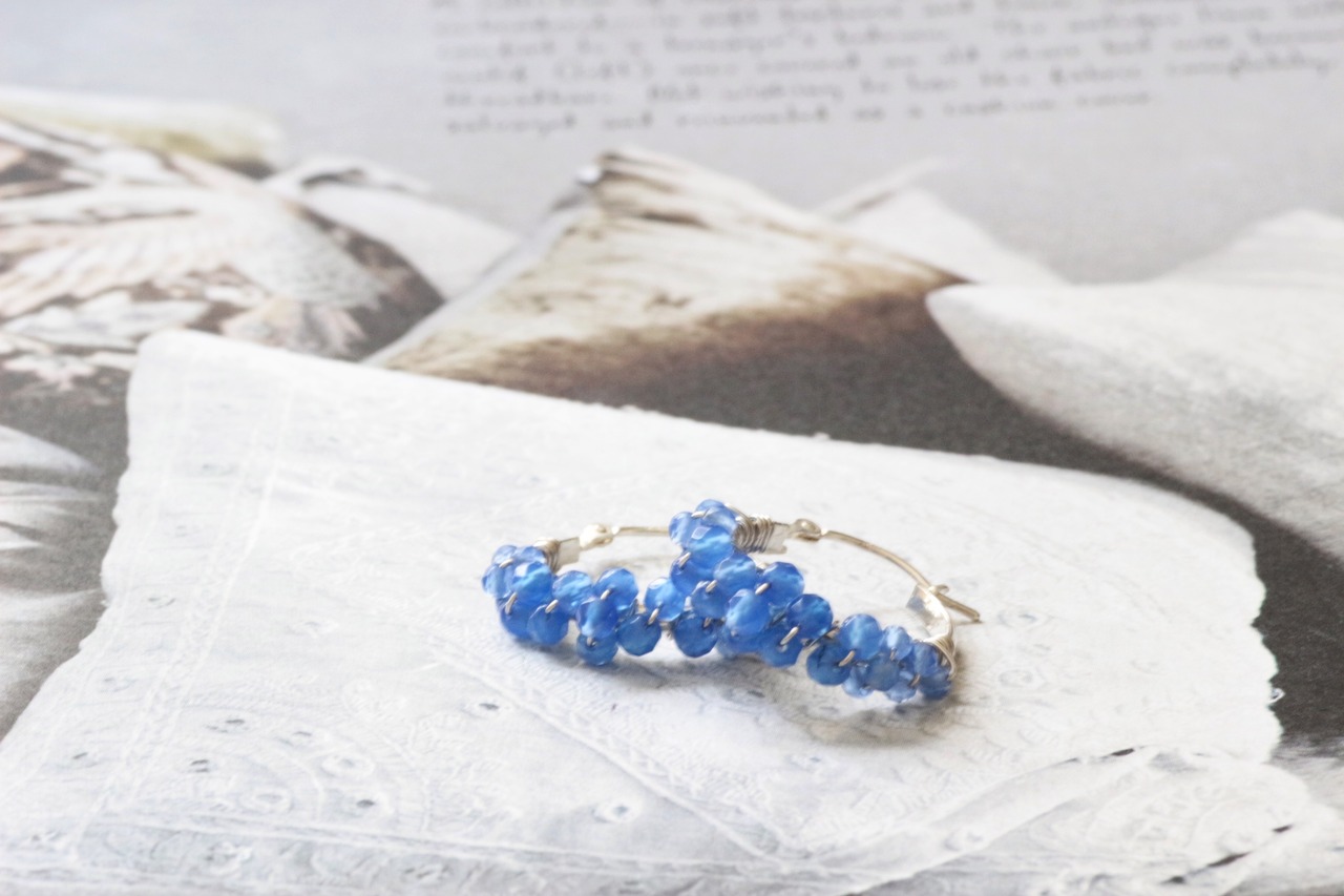 ブルーアゲートをぎゅっと集めたSV925遮断式フープピアスです。
