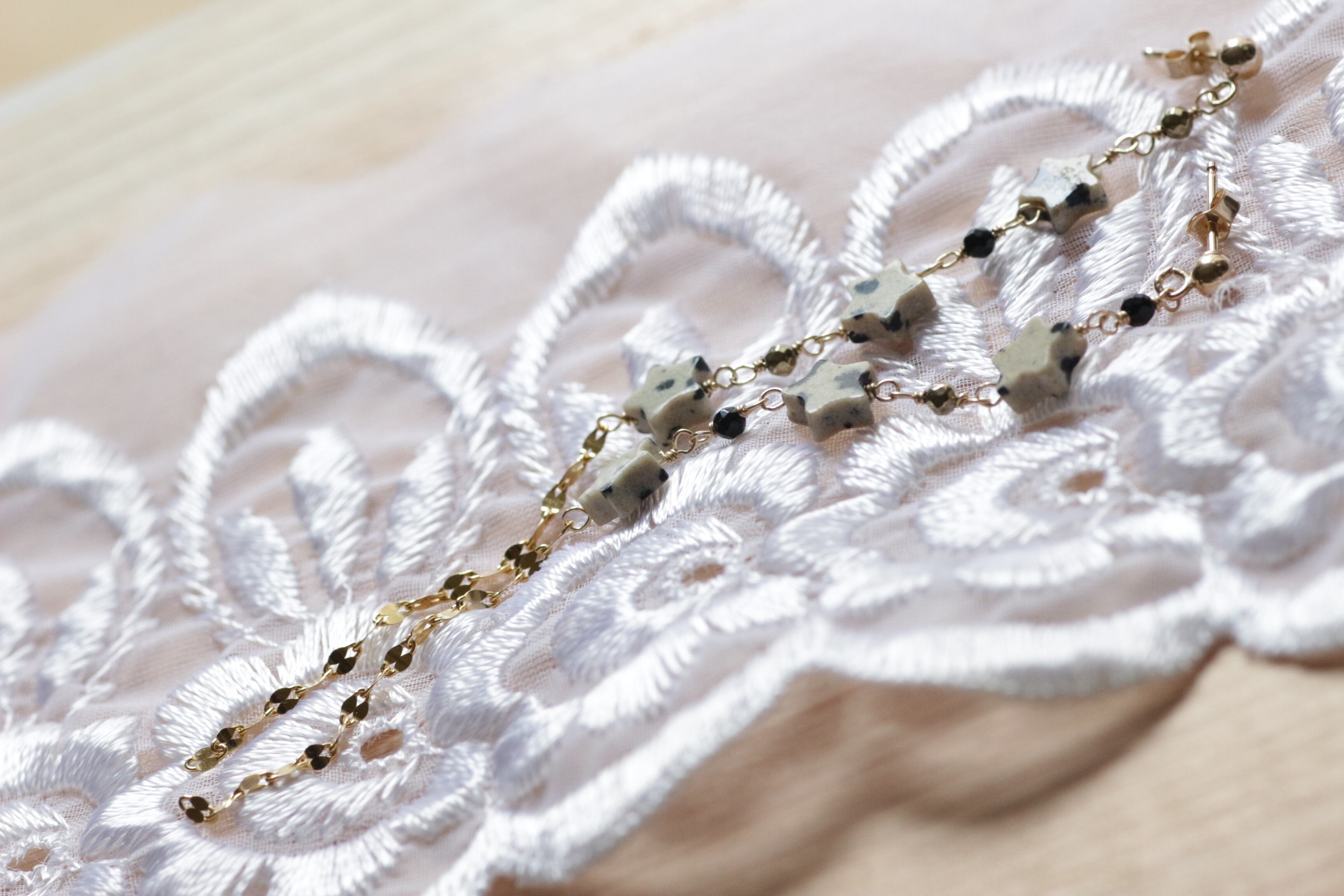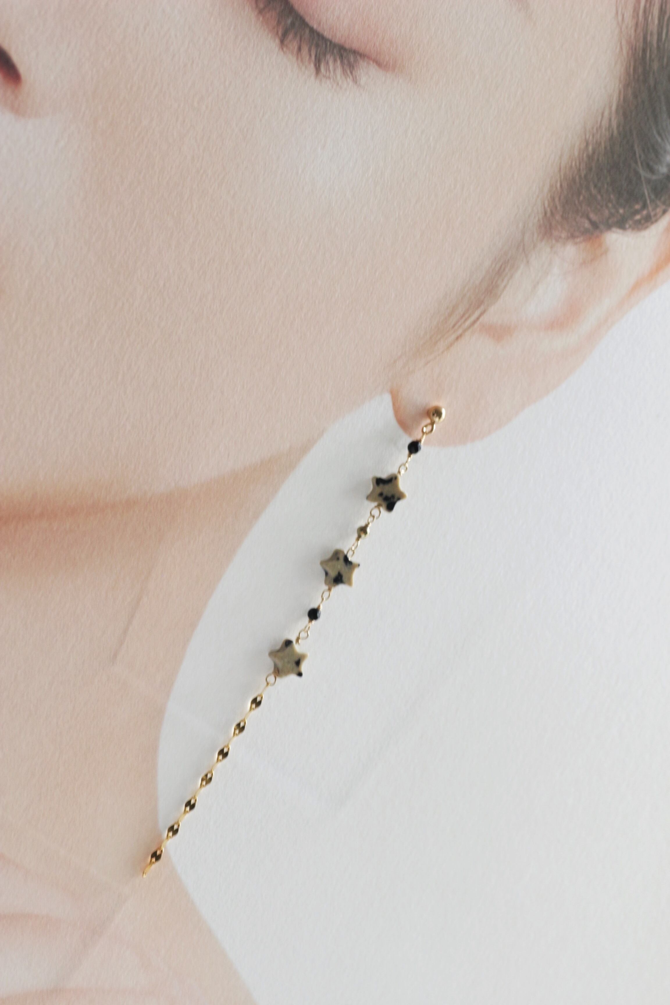 小さな星型のダルメシアンジャスパーを流星をイメージし、キラキラチェーンと合わせたロングピアスです。