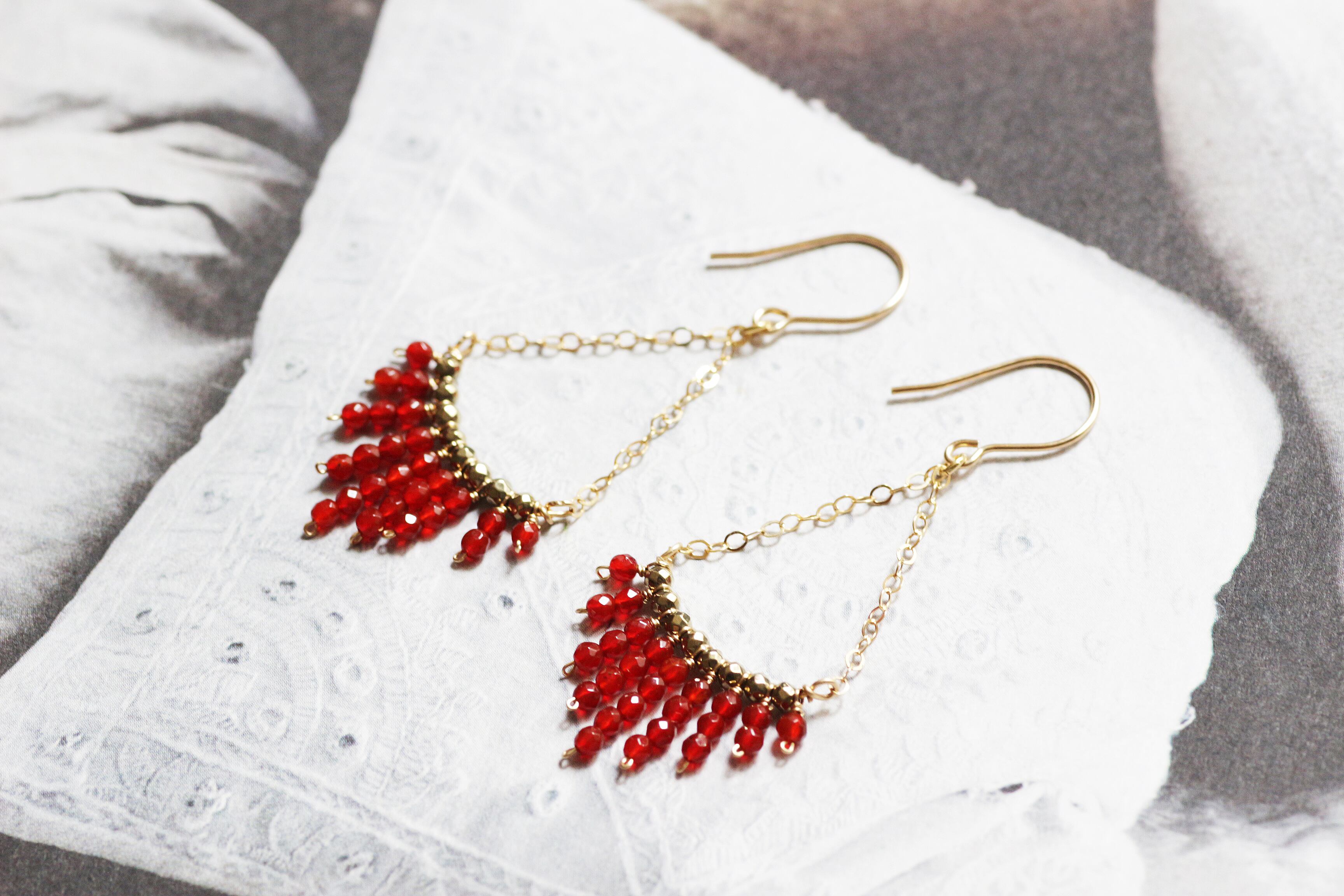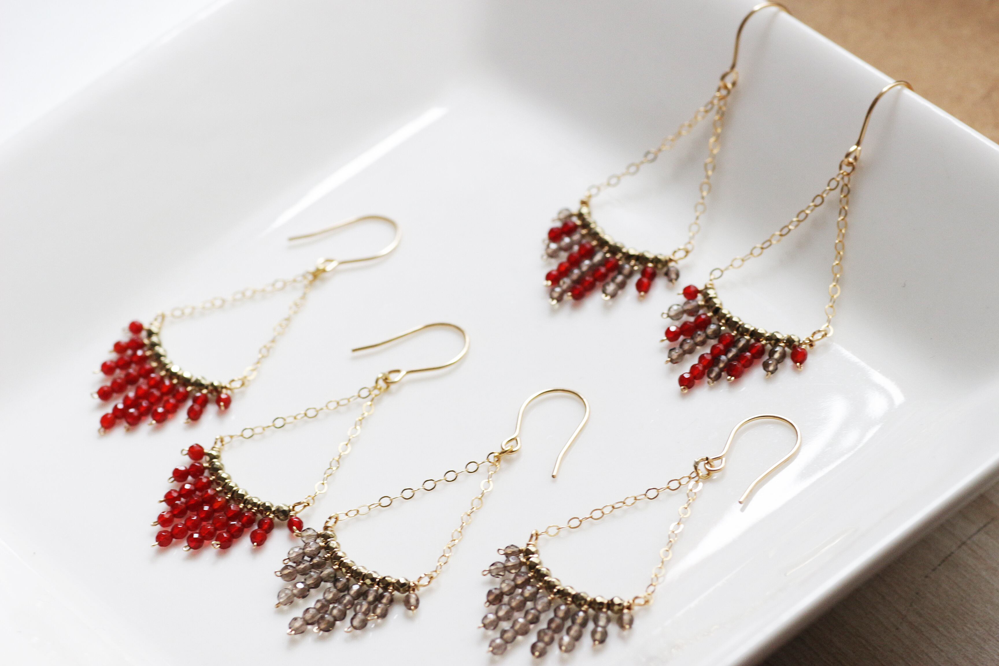極小の天然石(レッドアゲート)をフリンジ風にアレンジし