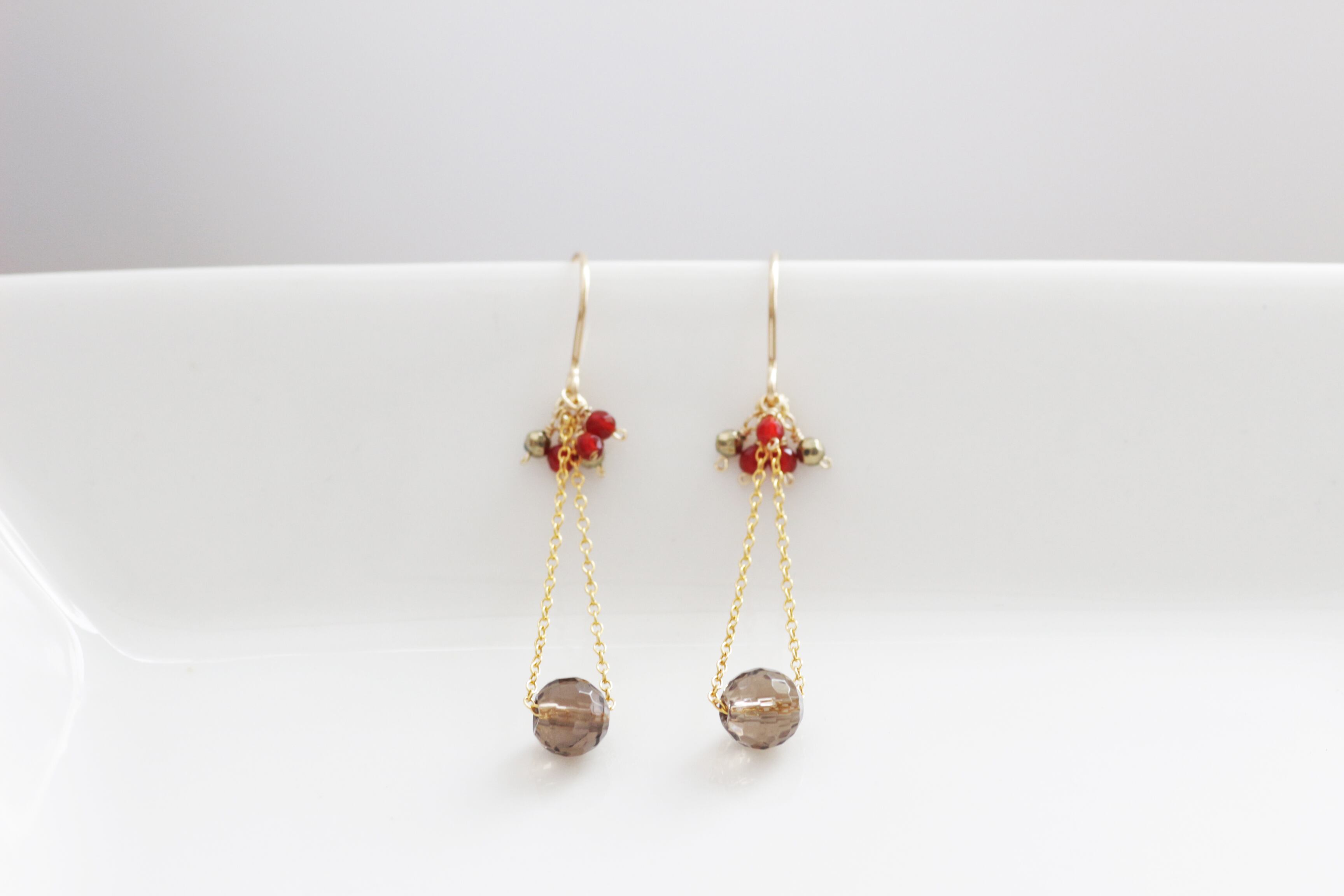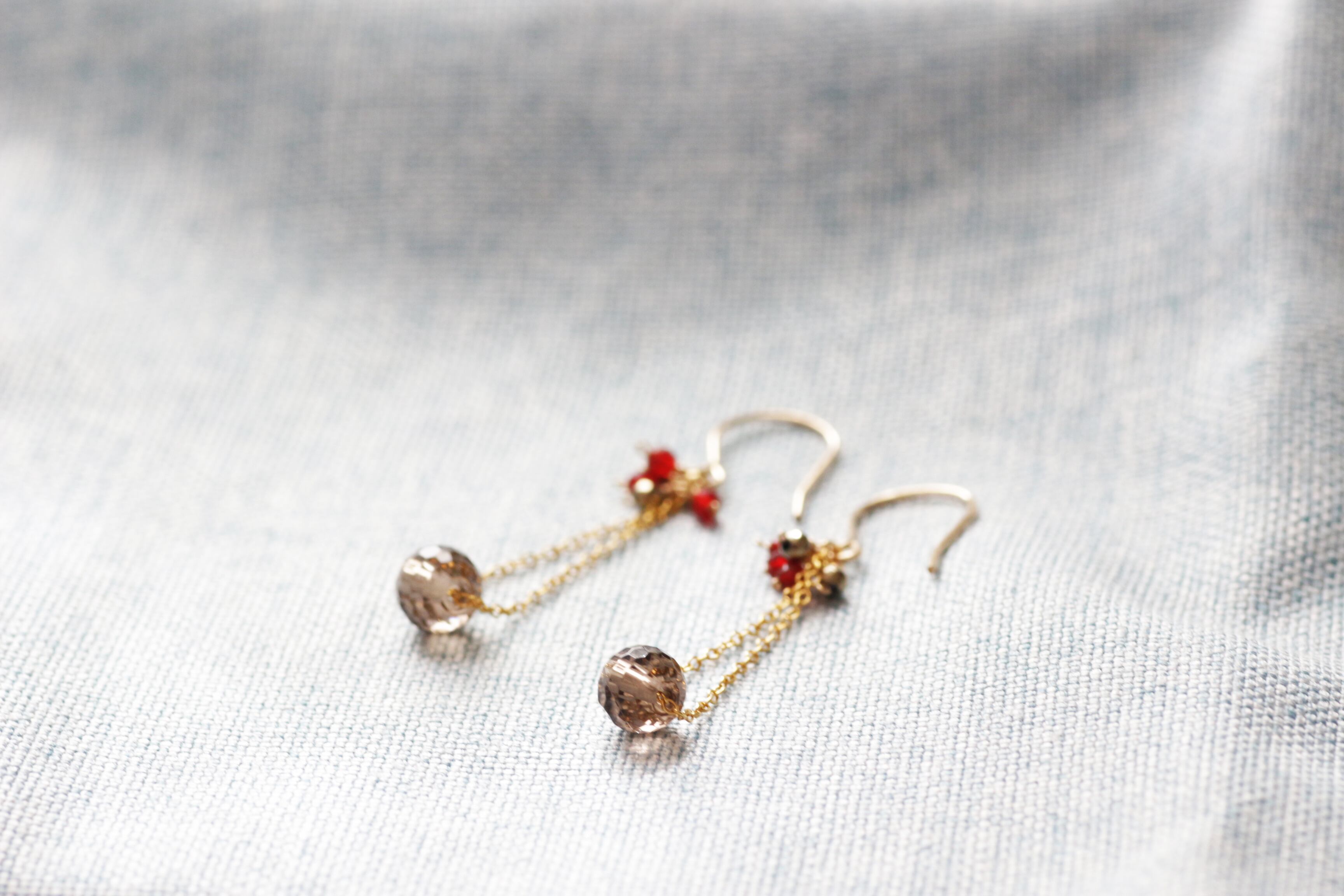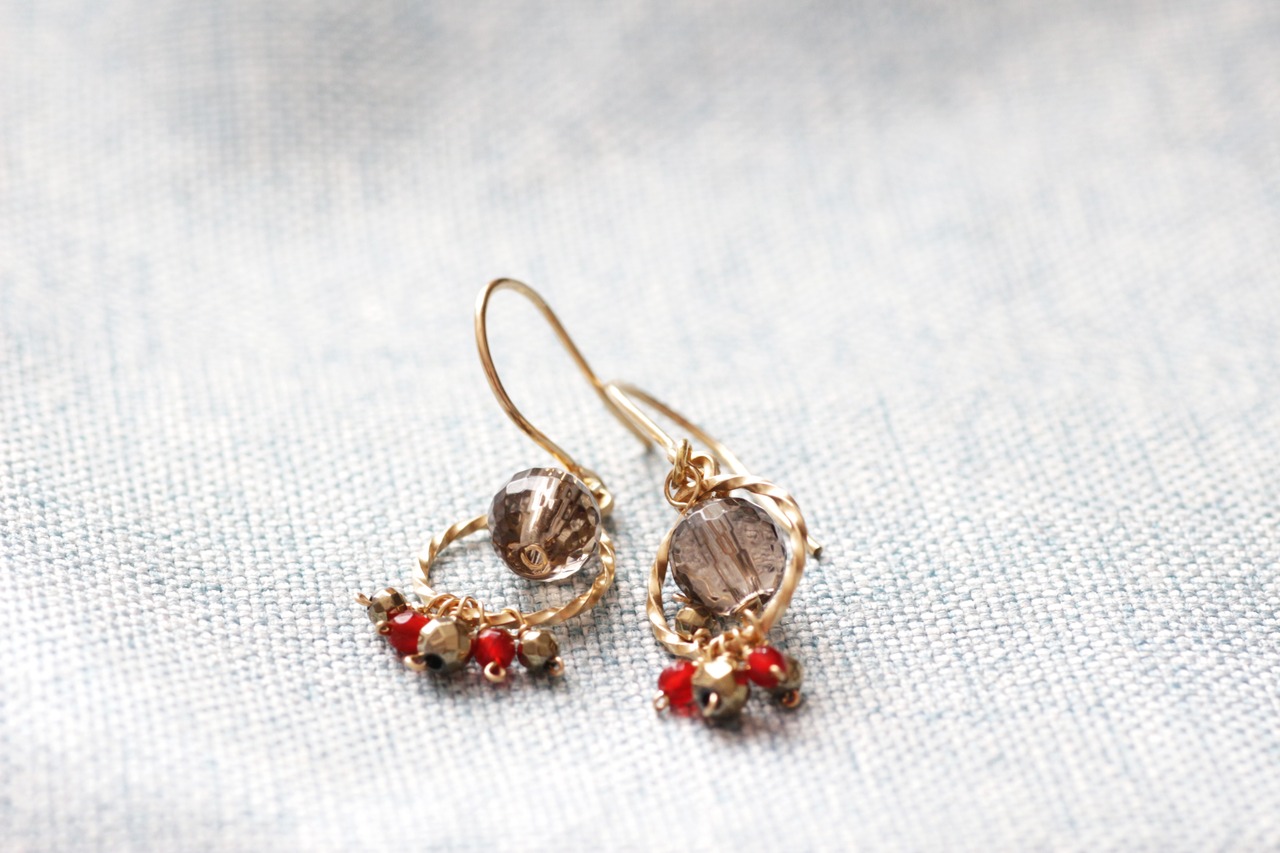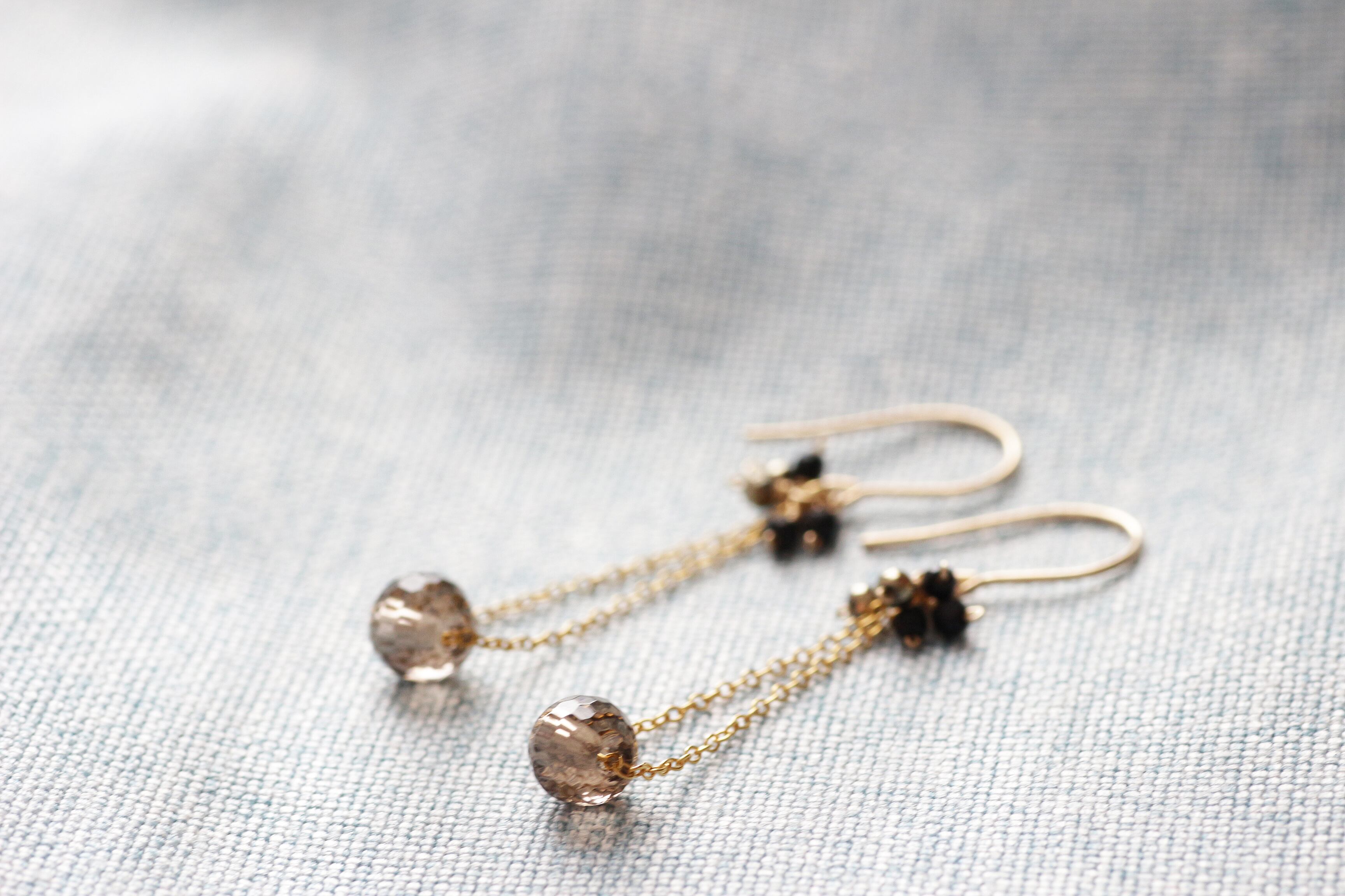 ミラーカットが美しいライトブラウンのスモーキークォーツをメインに