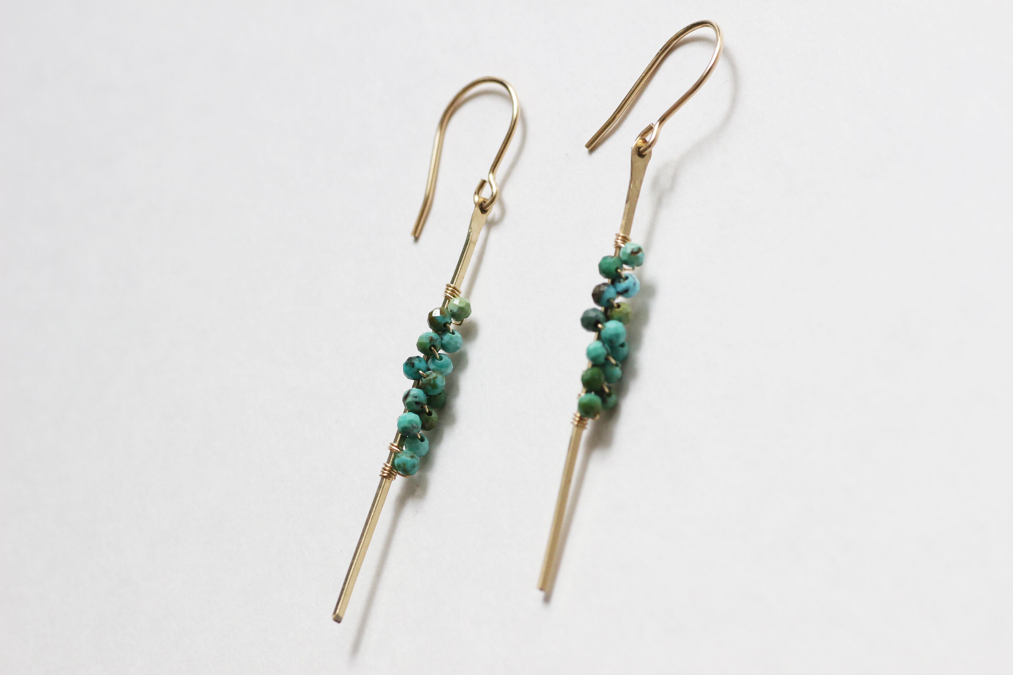 約2mmの小さなラウンドカットのターコイズをスティックにぎゅっと集めたデザインピアスです。