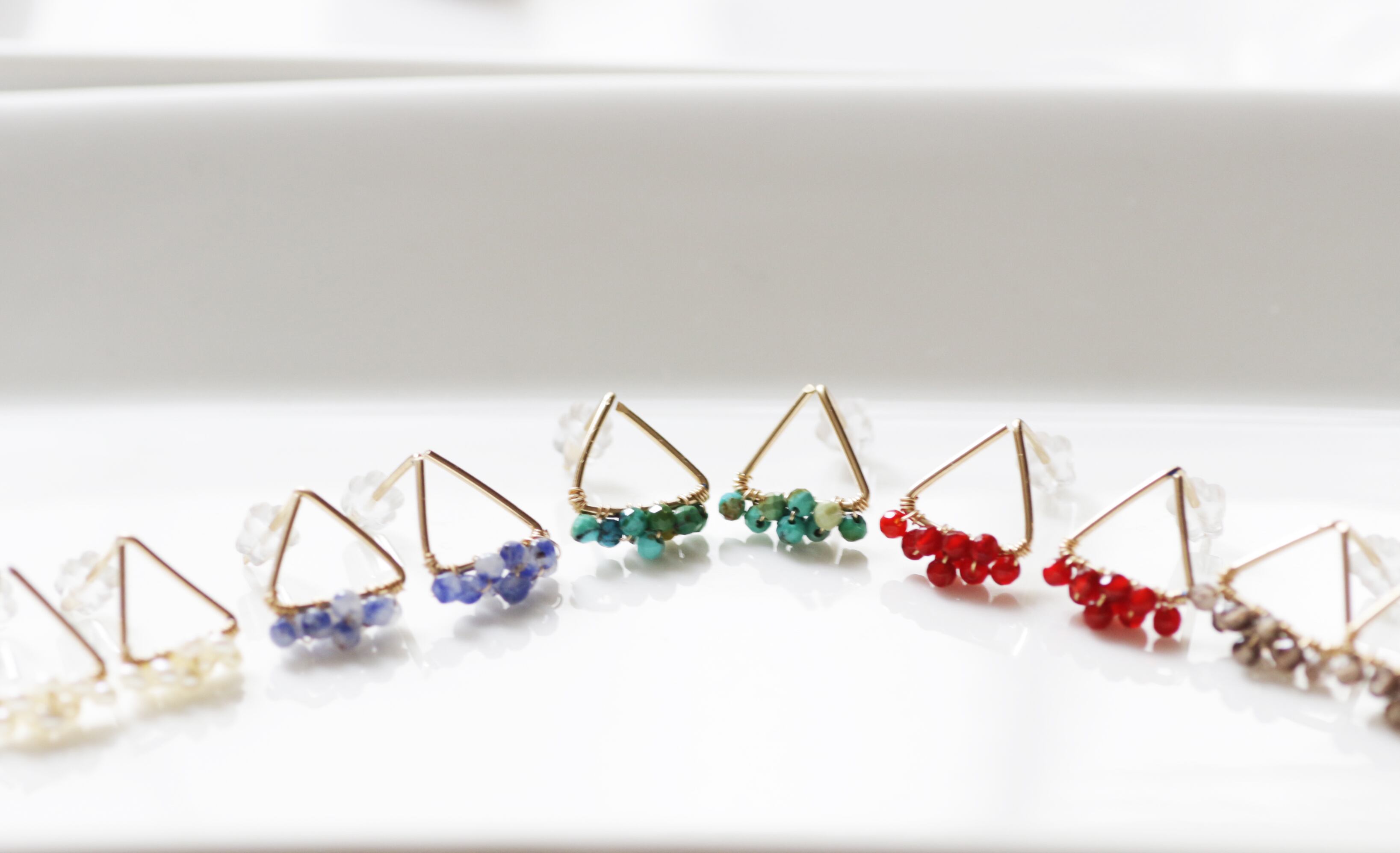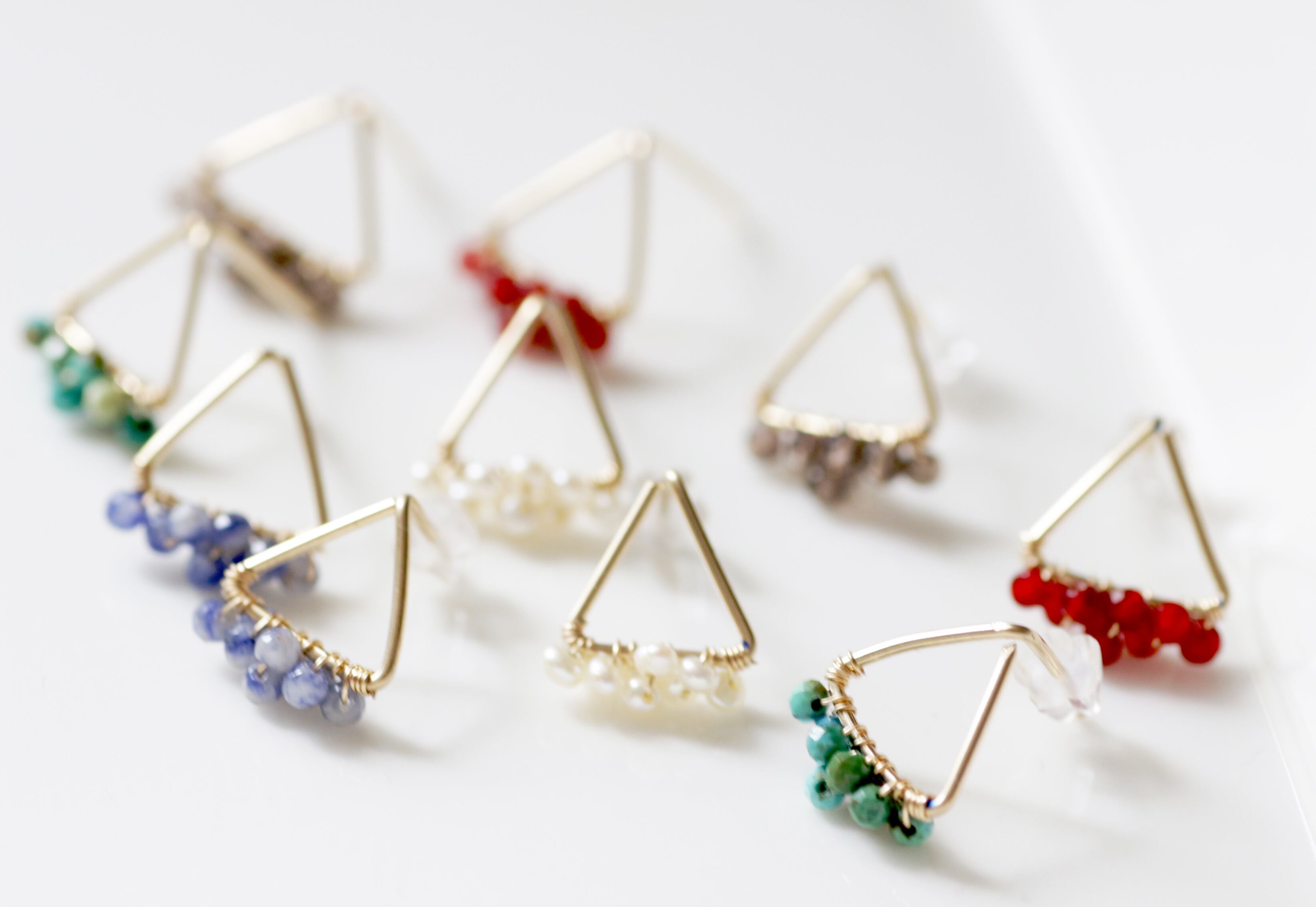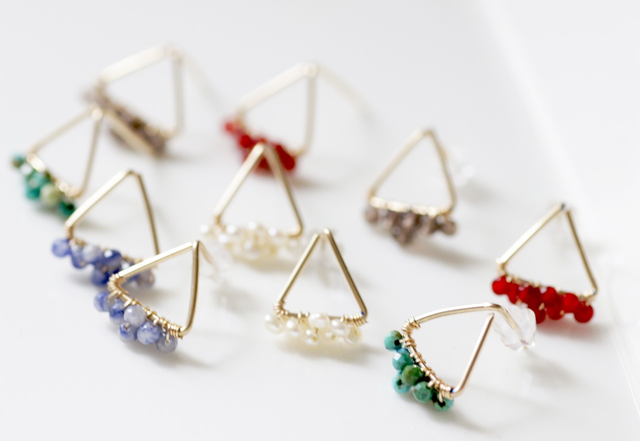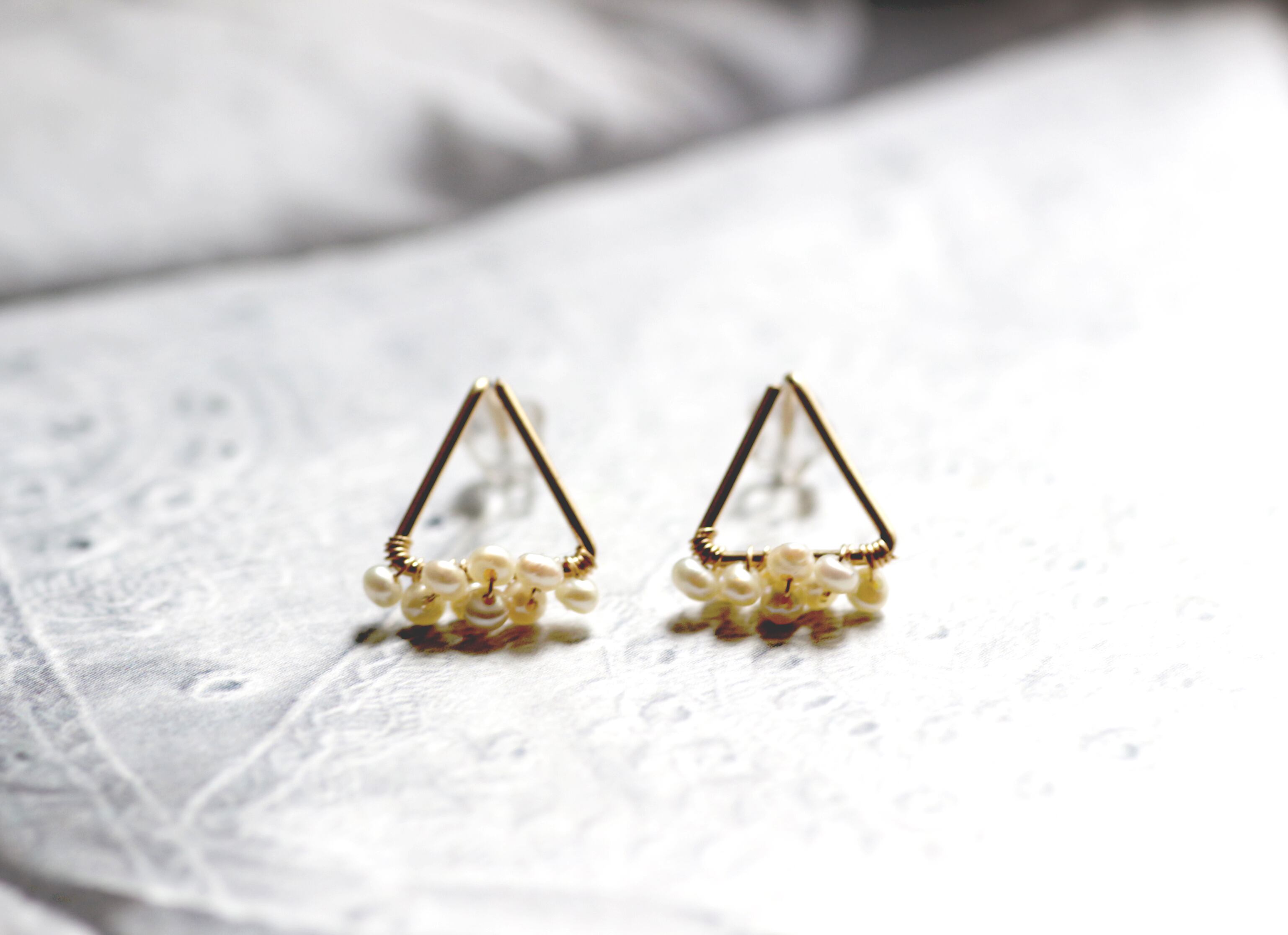 約2mmの小さな淡水パールを小さなトライアングルにぎゅっと集めたデザインピアスです。