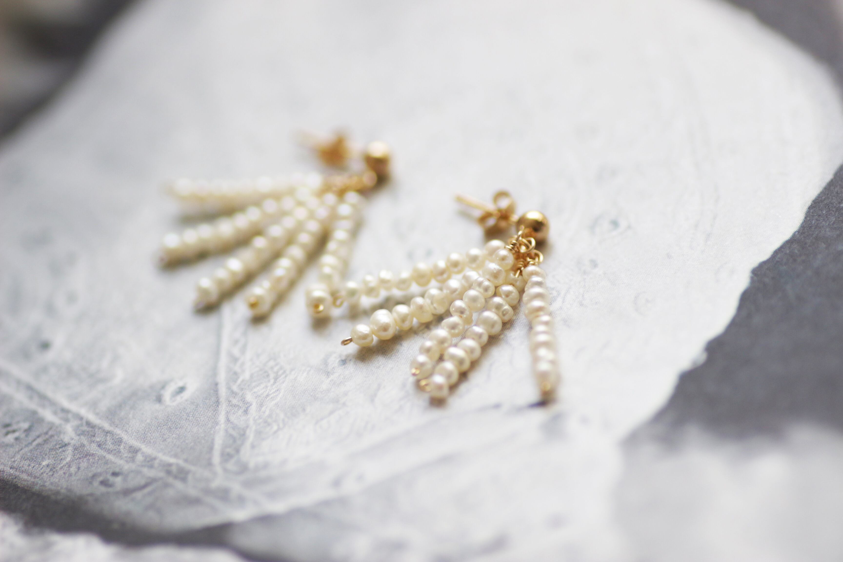 稀少と言われる極小のベビー淡水パールをタッセル風に仕上げたスタッドピアスです。