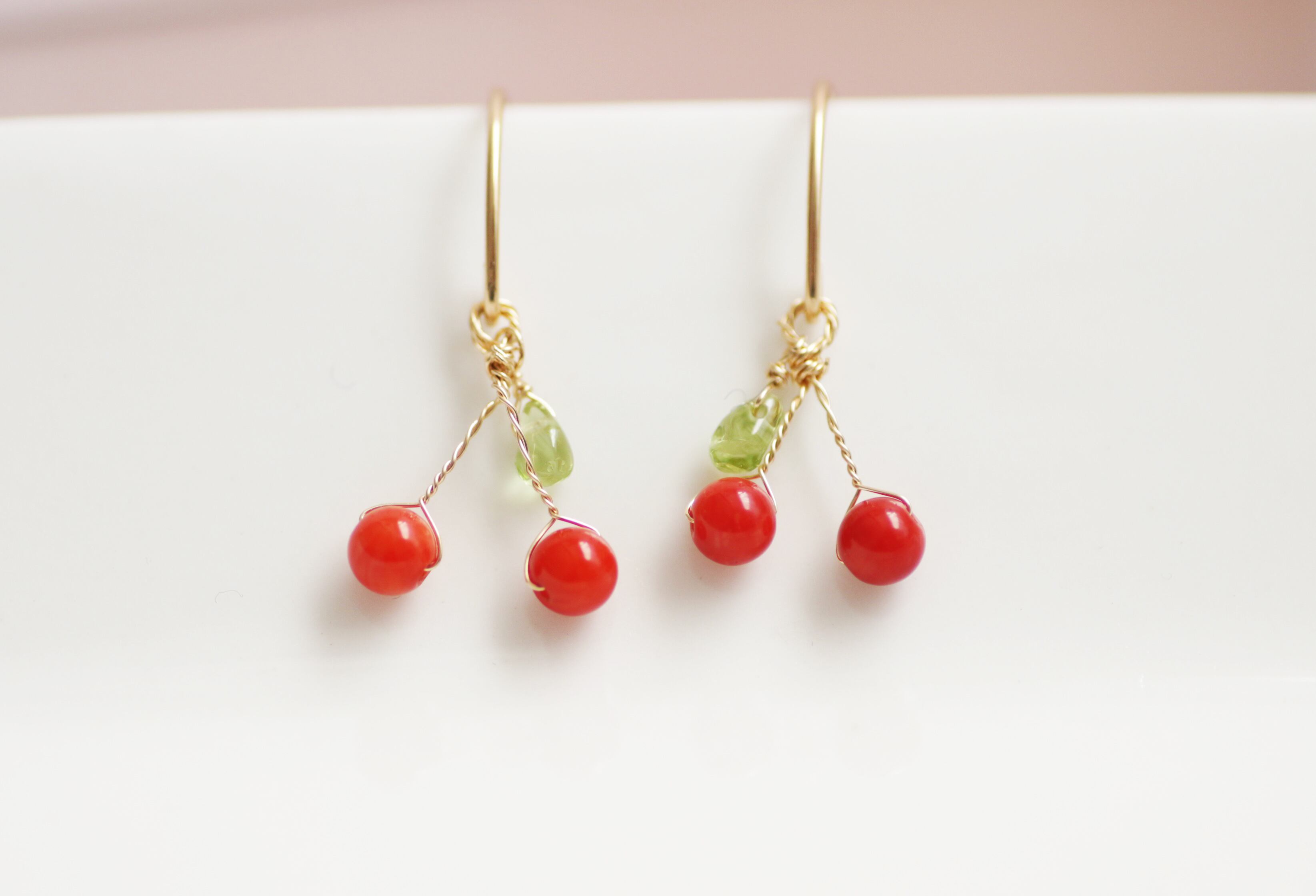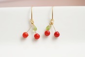 赤い実ような丸いサンゴ2つ、さくらんぼに仕立てた遊び心ありの大人可愛いピアスです。