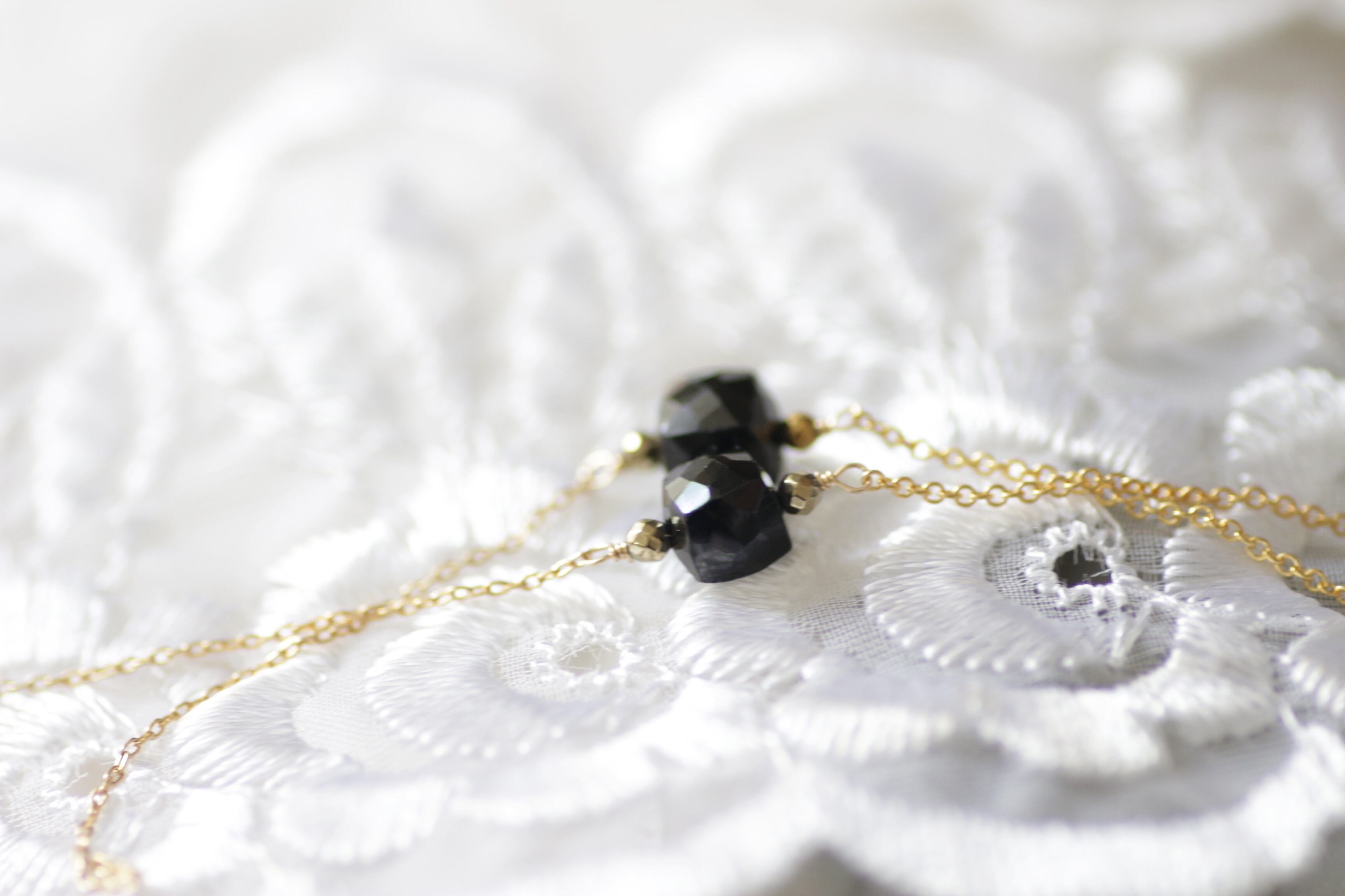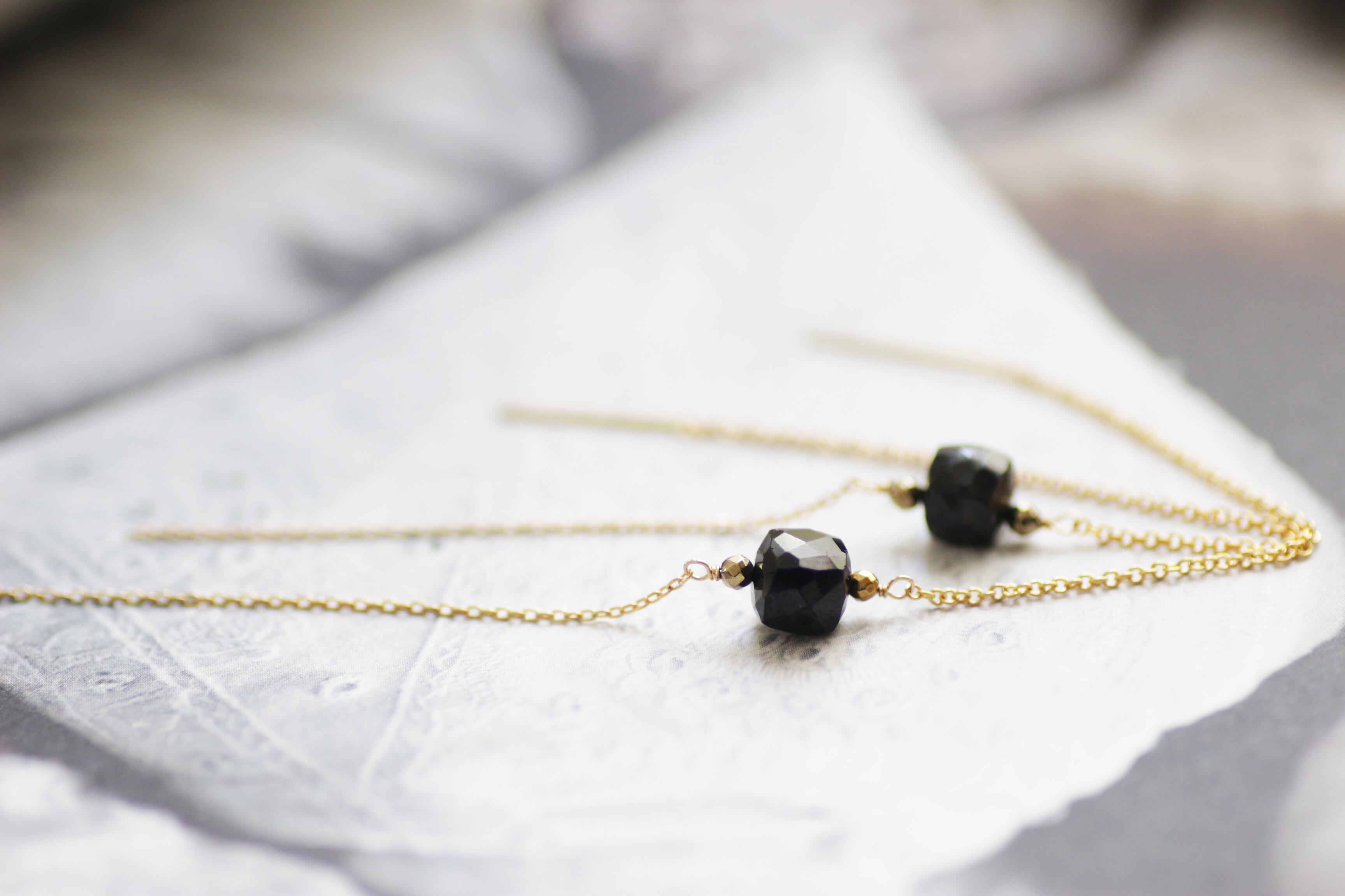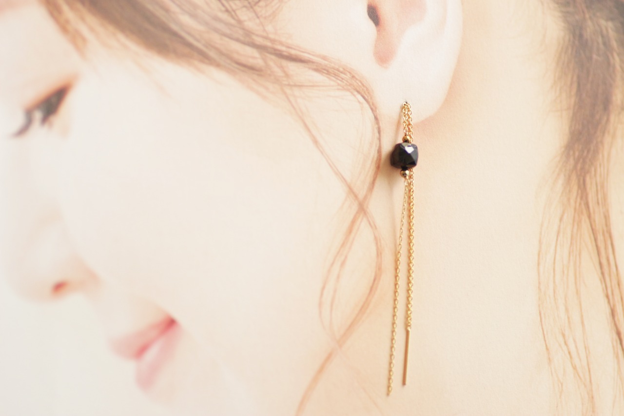 ダイスカットの艶めくブラックスピネルのピアスです。