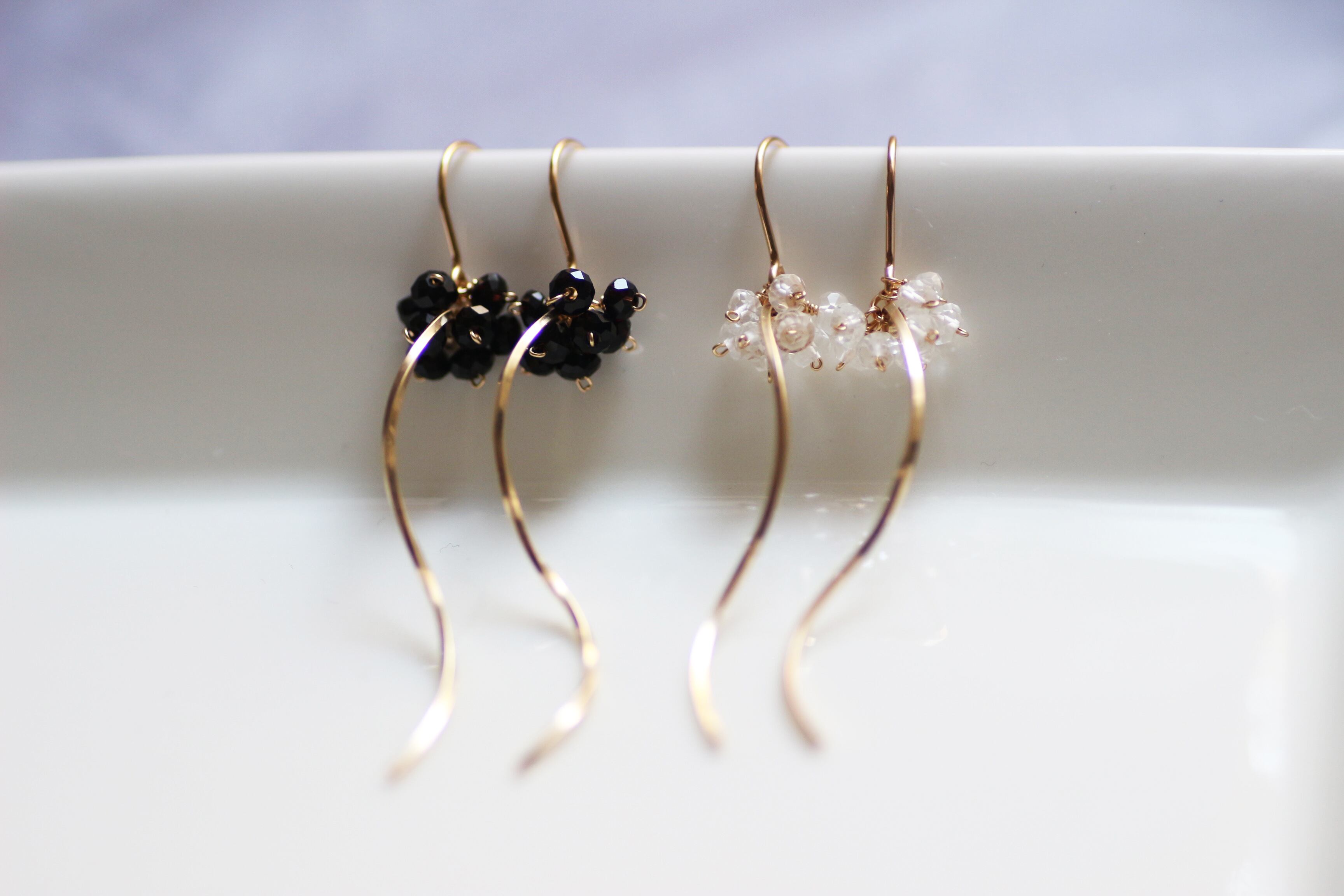 艶々と黒い光を放つブラックオニキスを集めたピアスです。