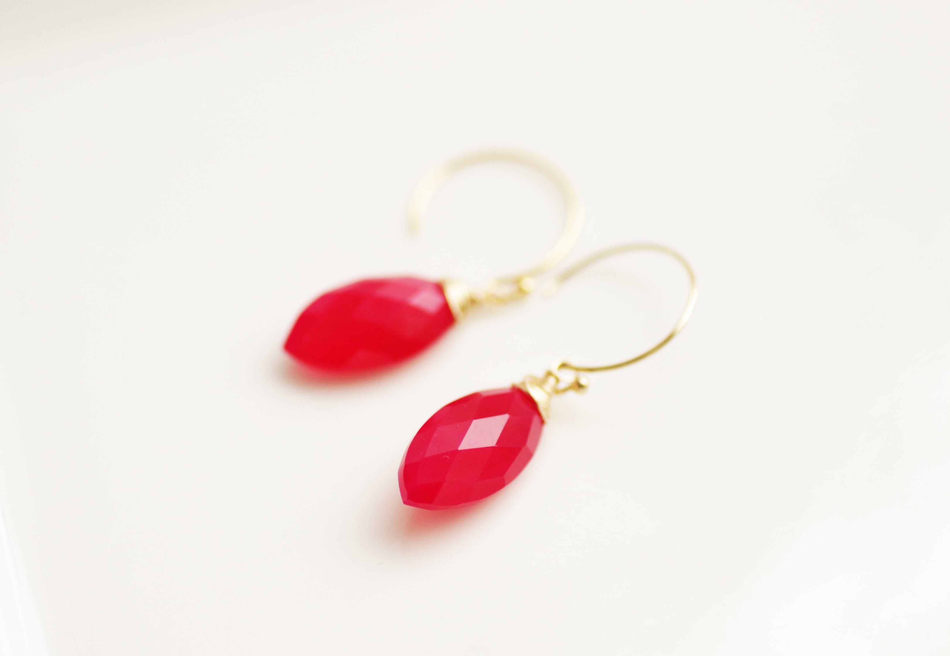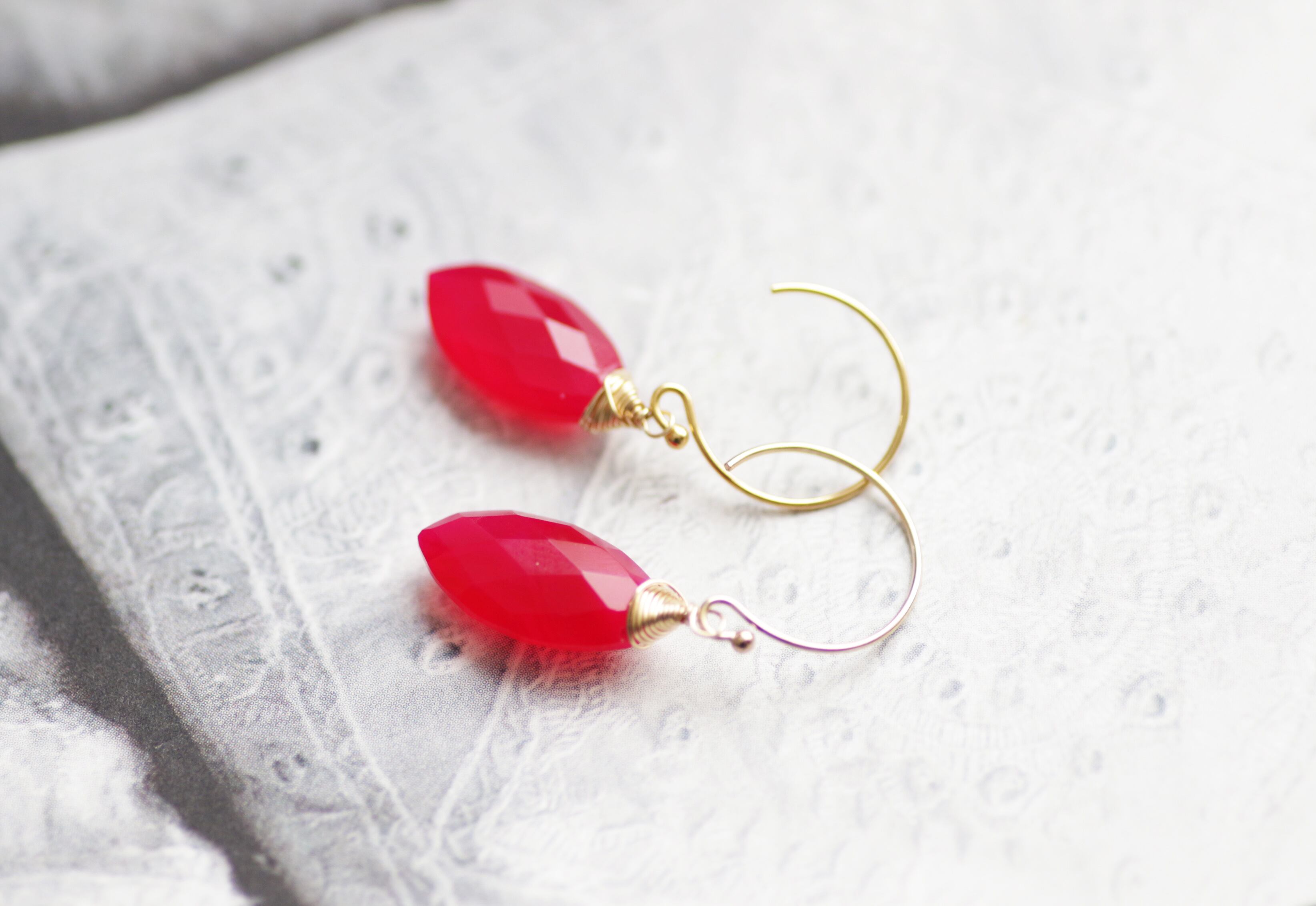 目を引く鮮やかフューシャピンクの一粒ピアスです。