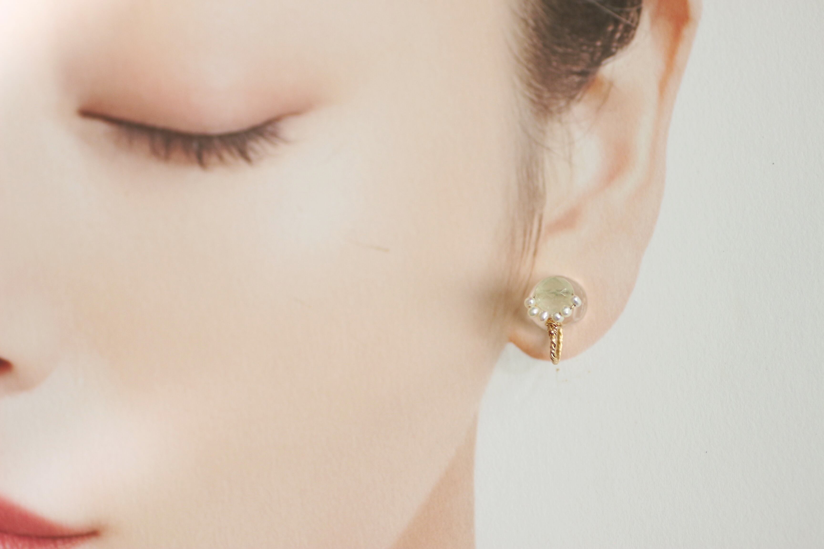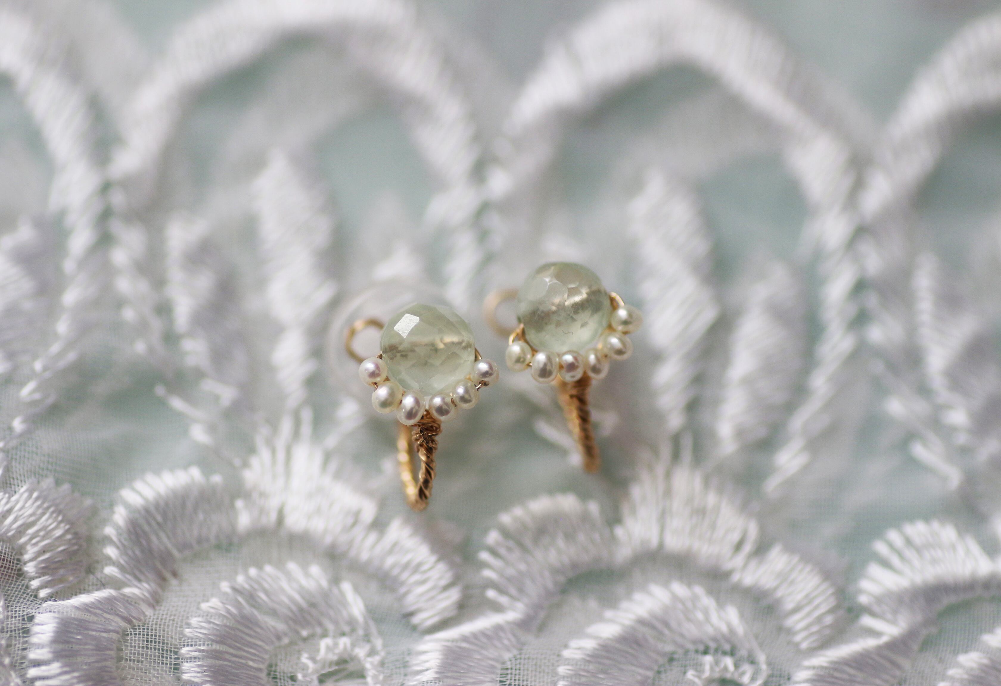 プレナイト×淡水パール・ミニマムクリップイヤリング