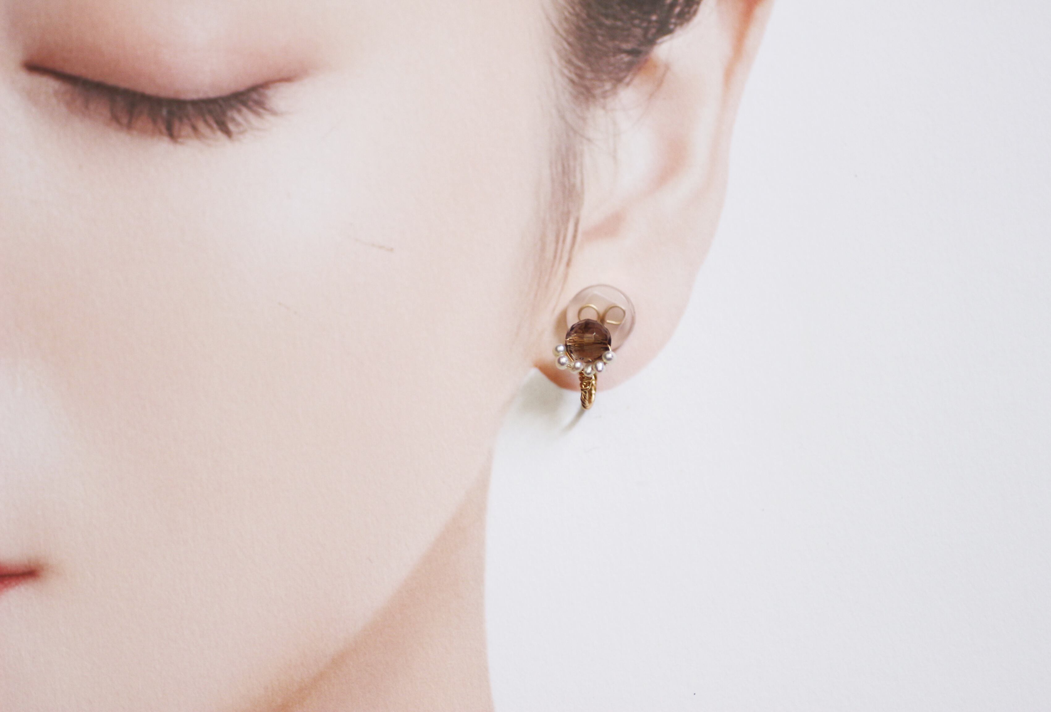 スモーキークォーツ×淡水パール・ミニマムクリップイヤリング