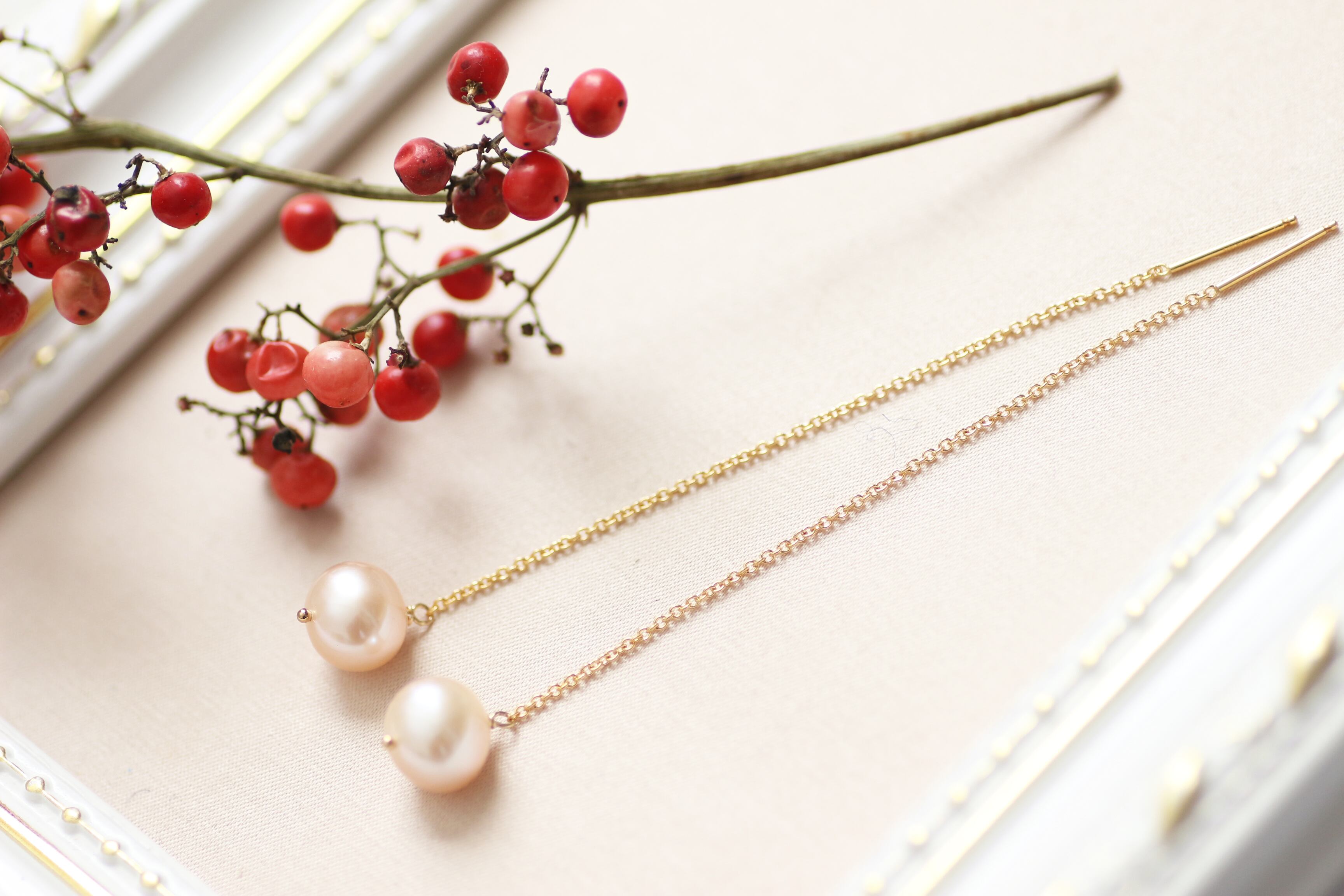 やわらかいほんのりピンク色、パールの持つ上品なツヤ、共に女性らしく耳元を飾ってくれることと思います。