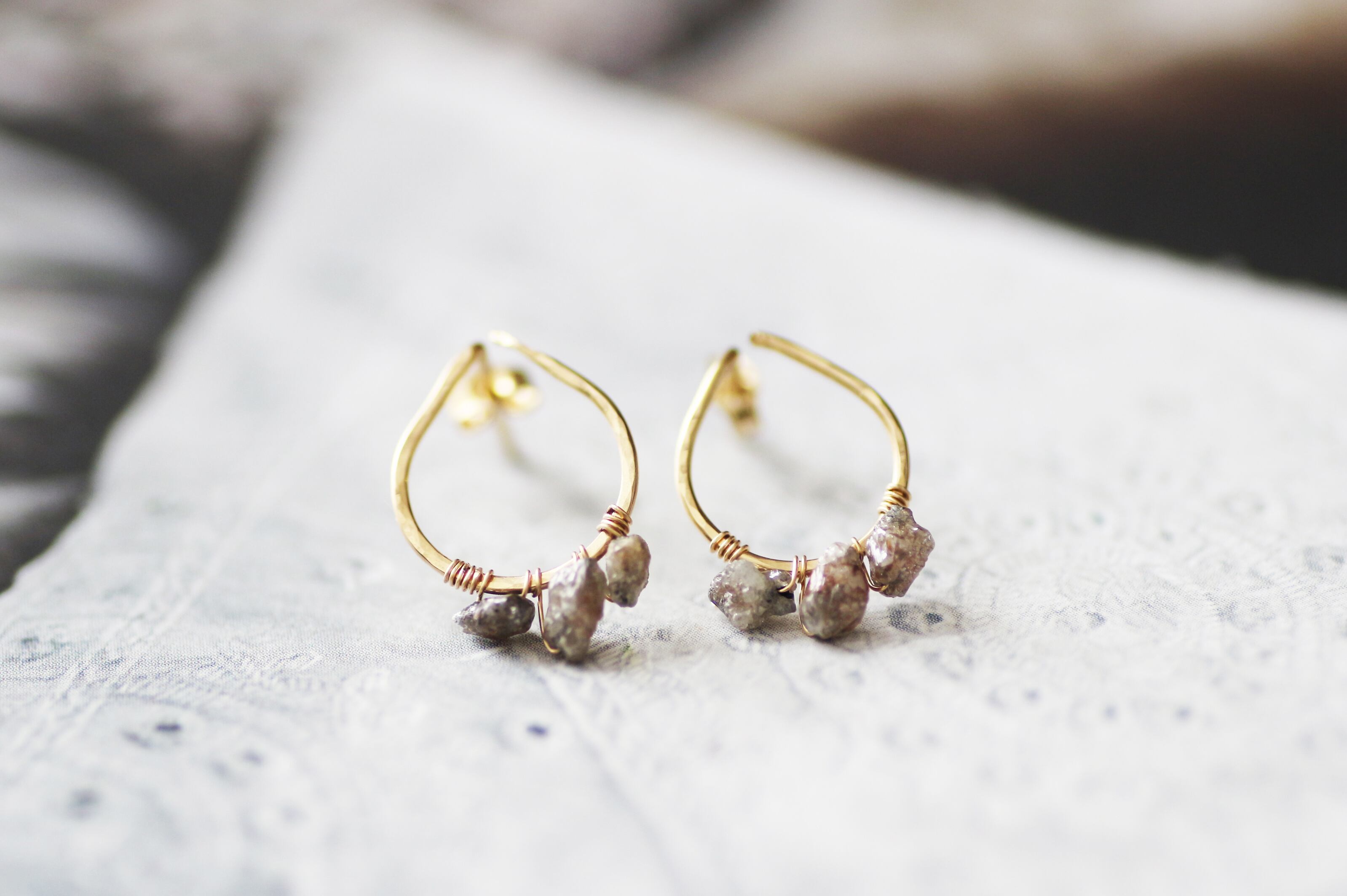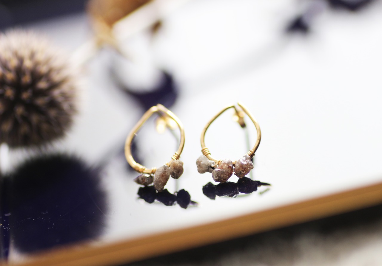 ナチュラル感あるダイヤモンドの原石が3つ並んだデザインピアスです。