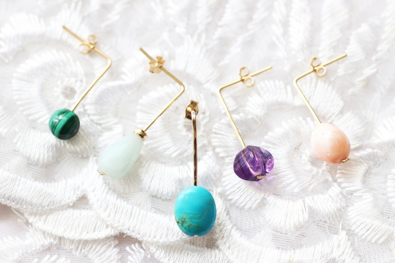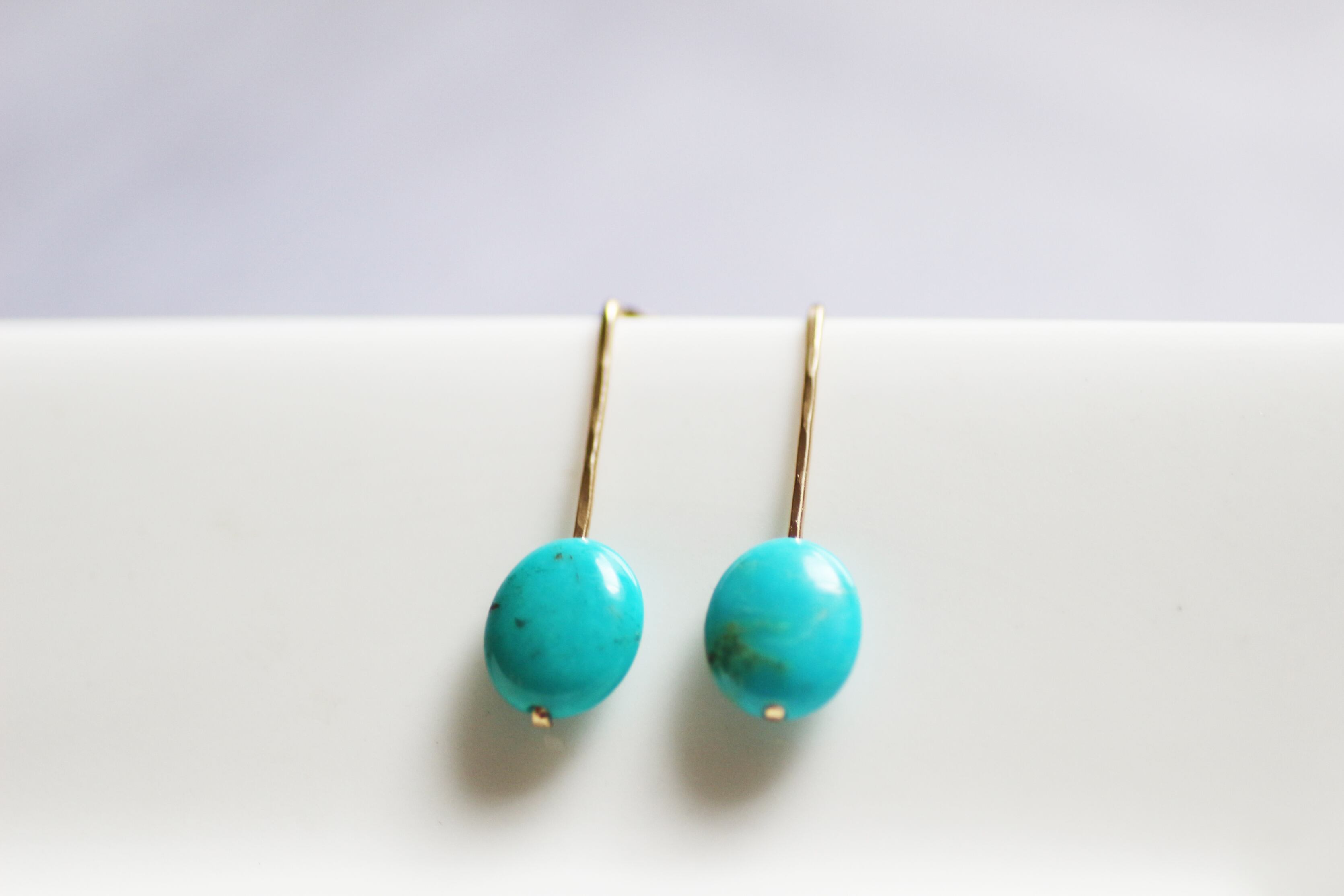 つるんとしたオーバル・ターコイズの一粒ピアスです。