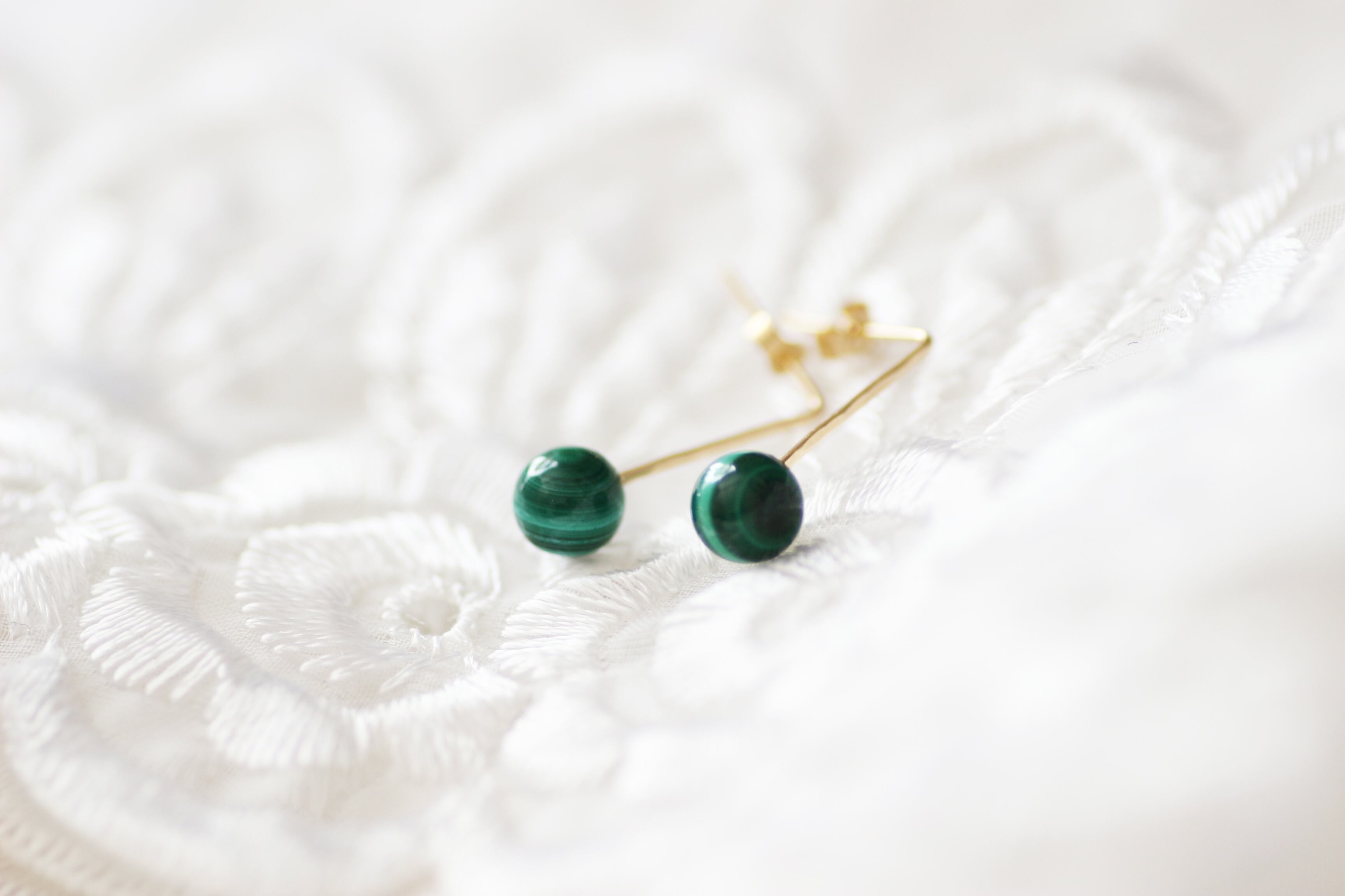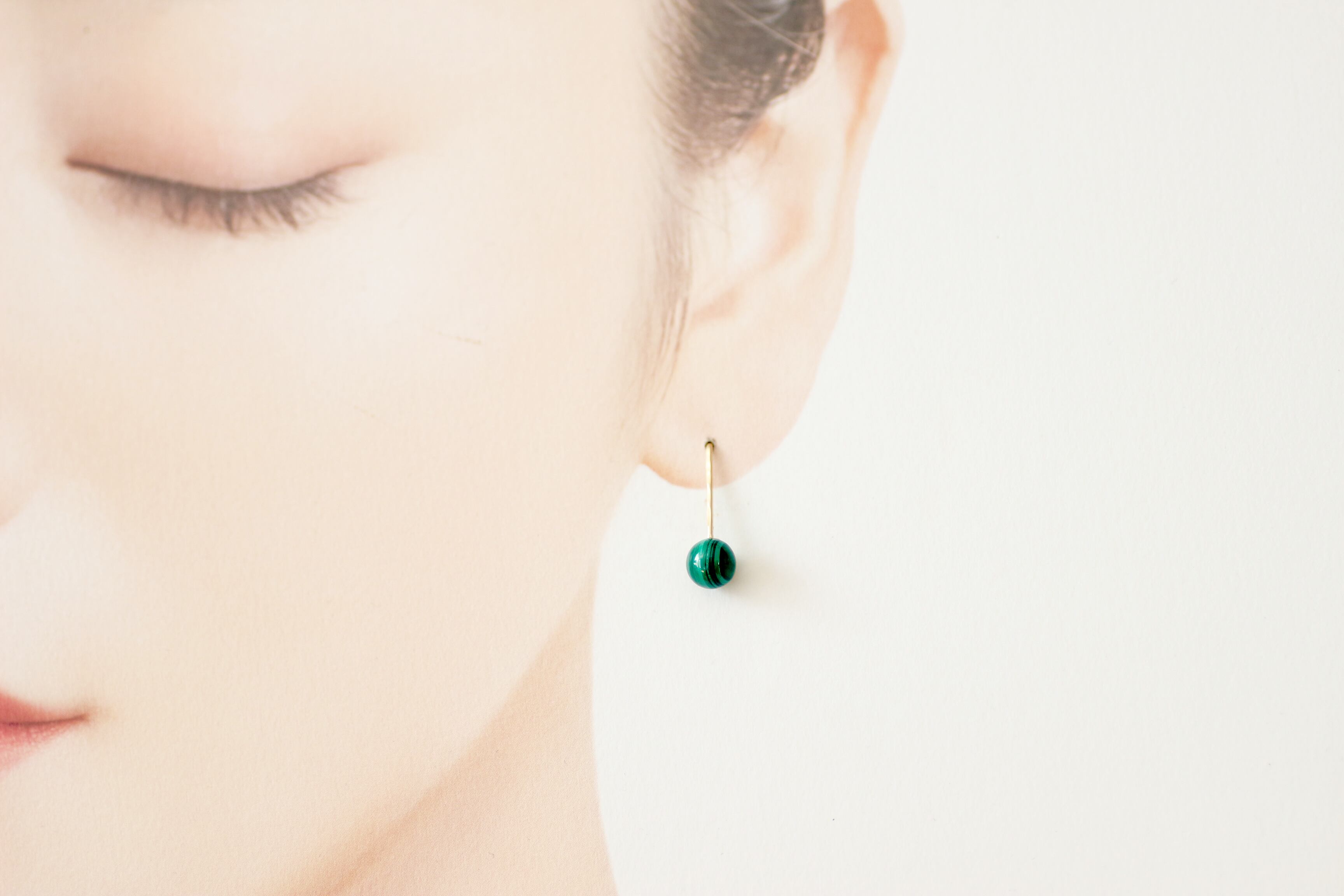つるんとまん丸・マラカイトの一粒ピアスです。