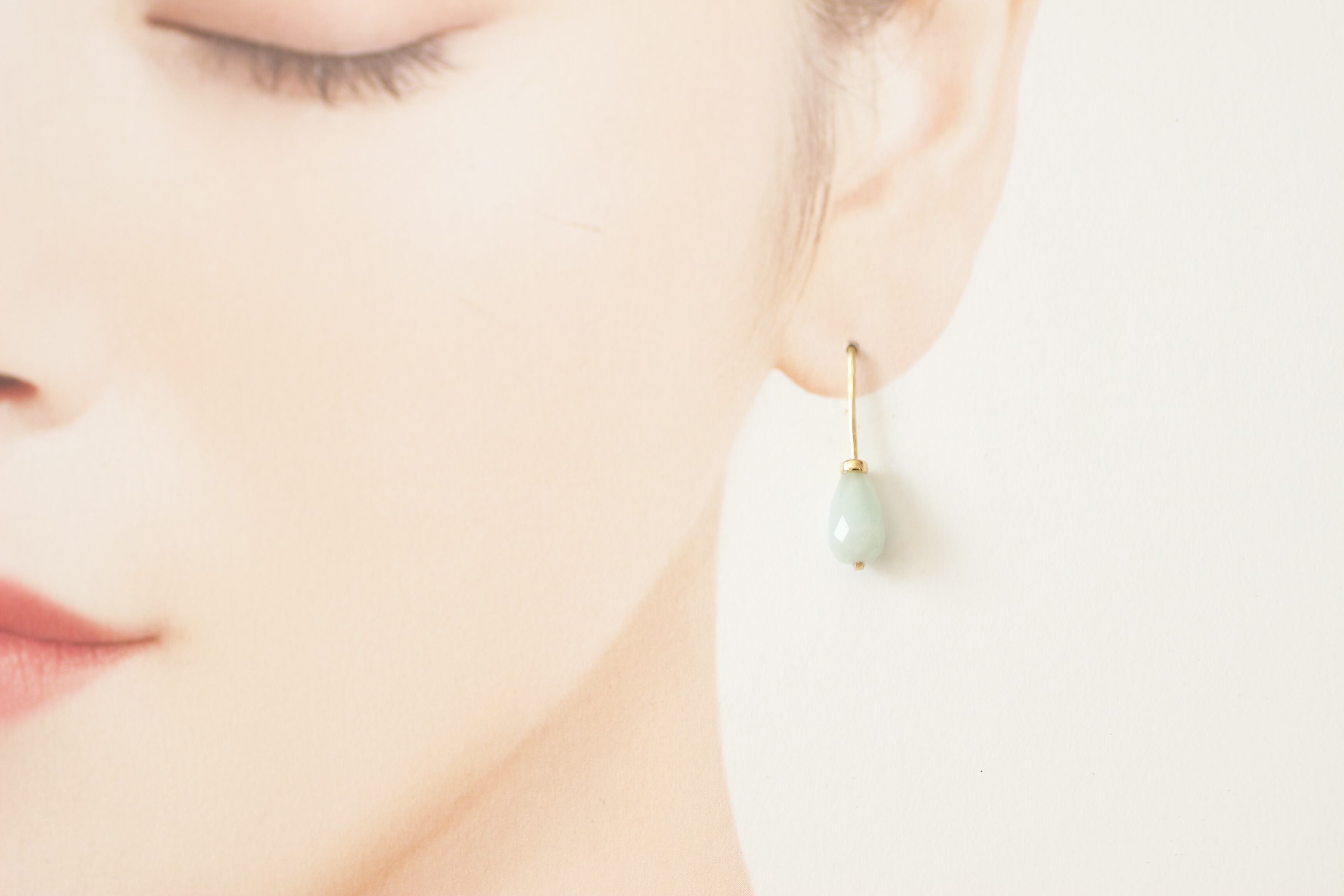 ドロップカット・アマゾナイトの一粒ピアスです。