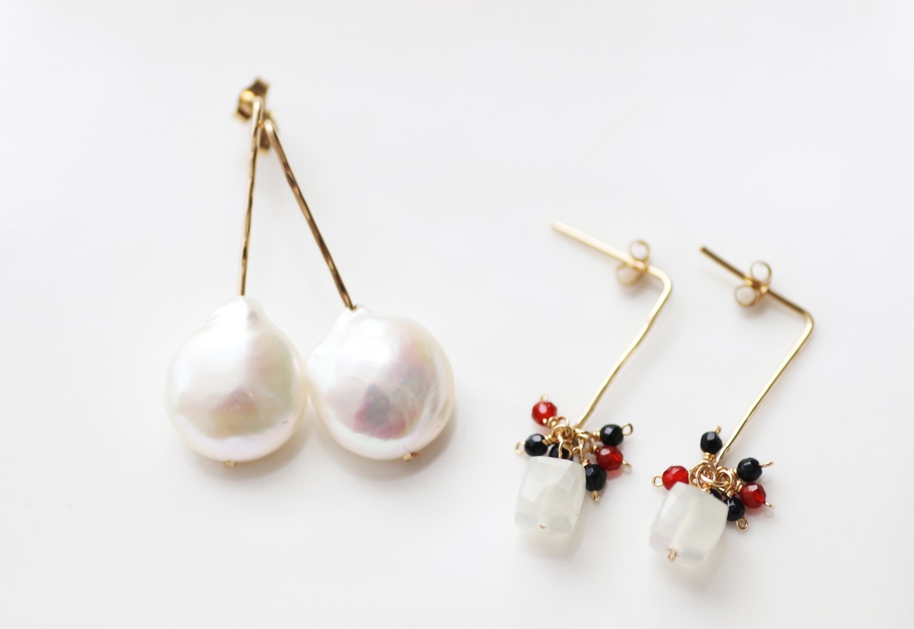 様々な一粒パールピアスがある中、シンプルだけどほんの少し個性的な、アクセントにもなってくれそうなものをお探しの方にオススメです。
