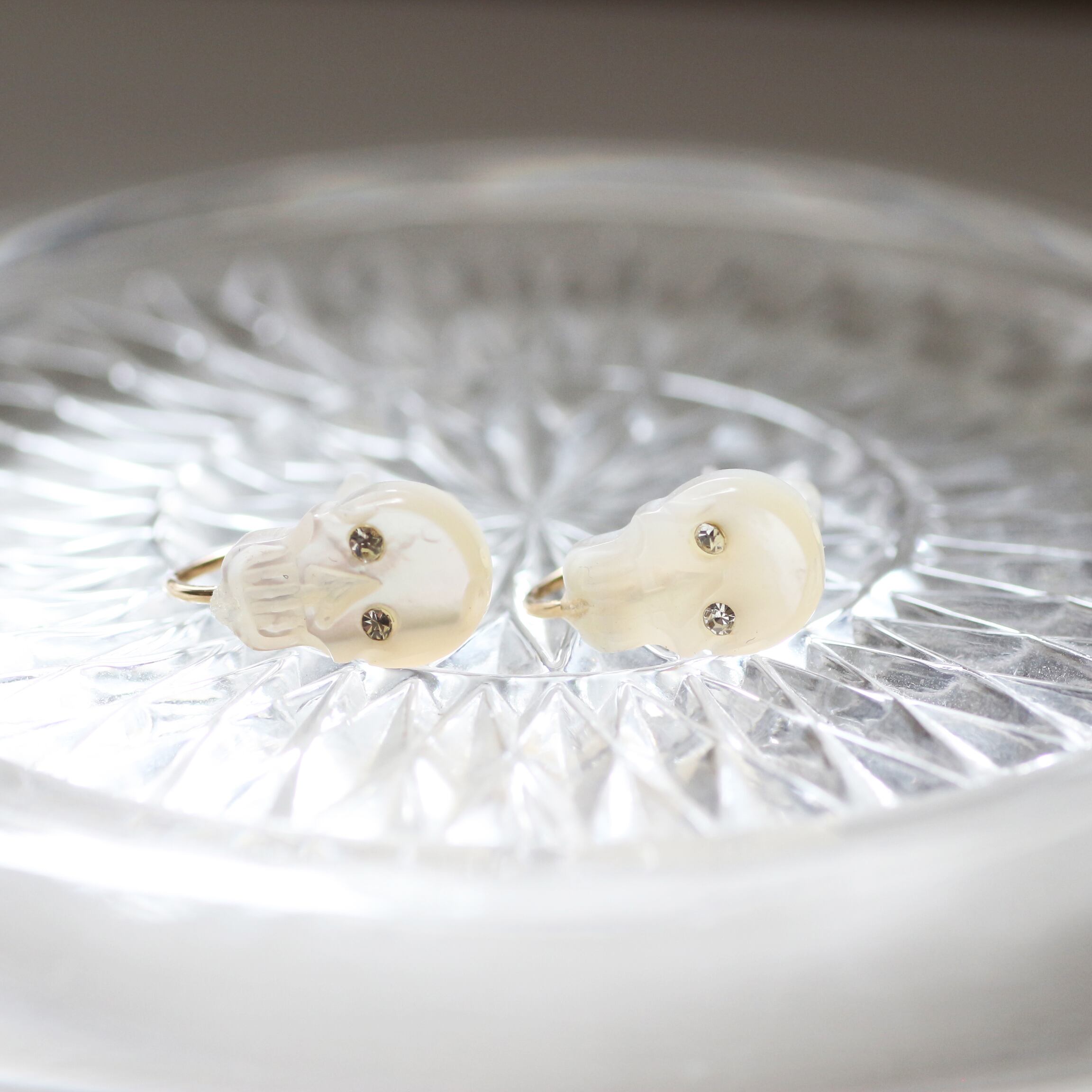 ちょっとユニークな表情のスカルのクリップイヤリングです。