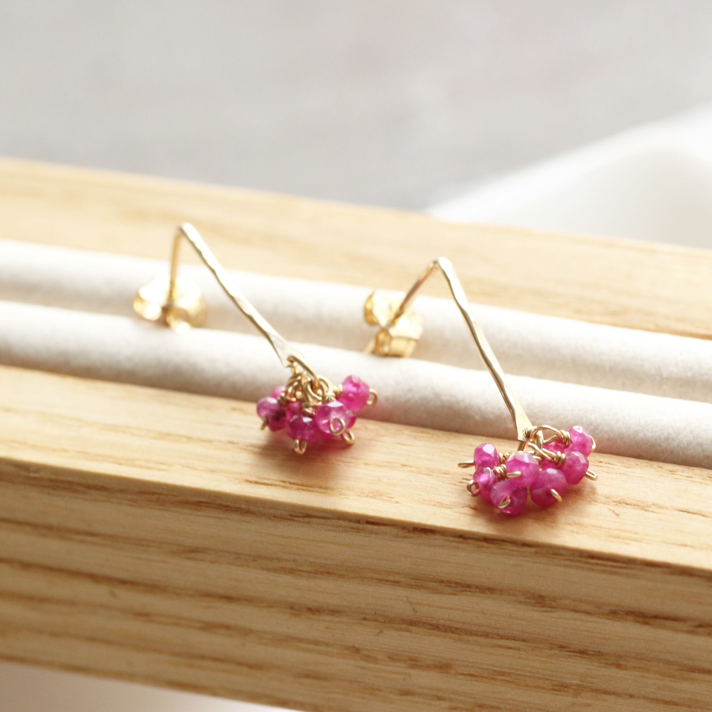 極小ルビーをぎゅっと集めた、シンプルだけどちょこっとアクセントにもなってくれそうなピアスです。