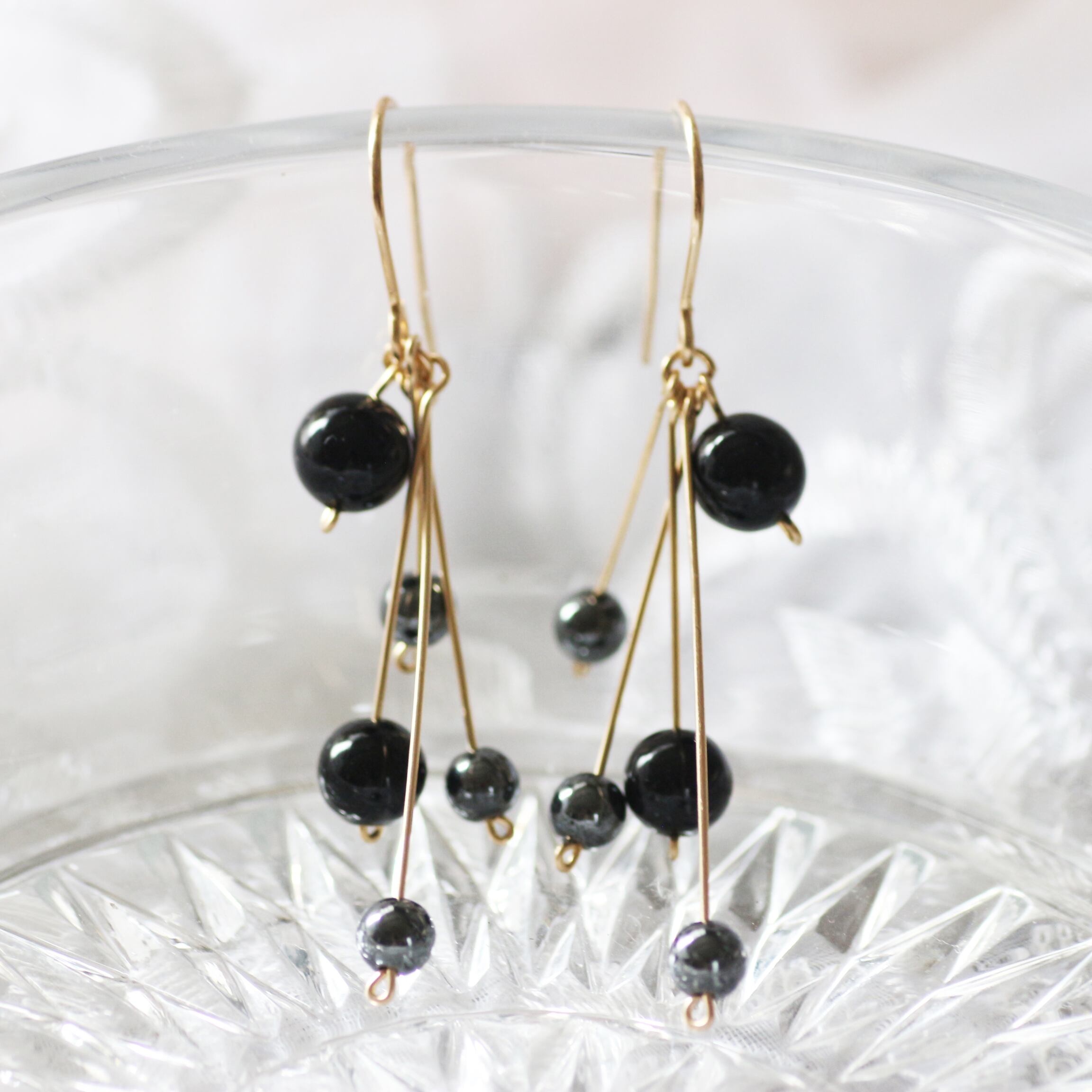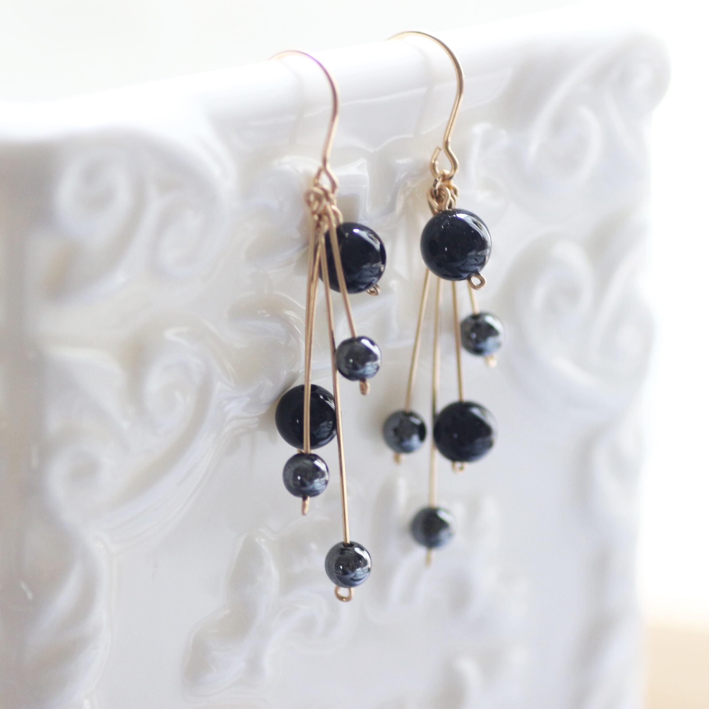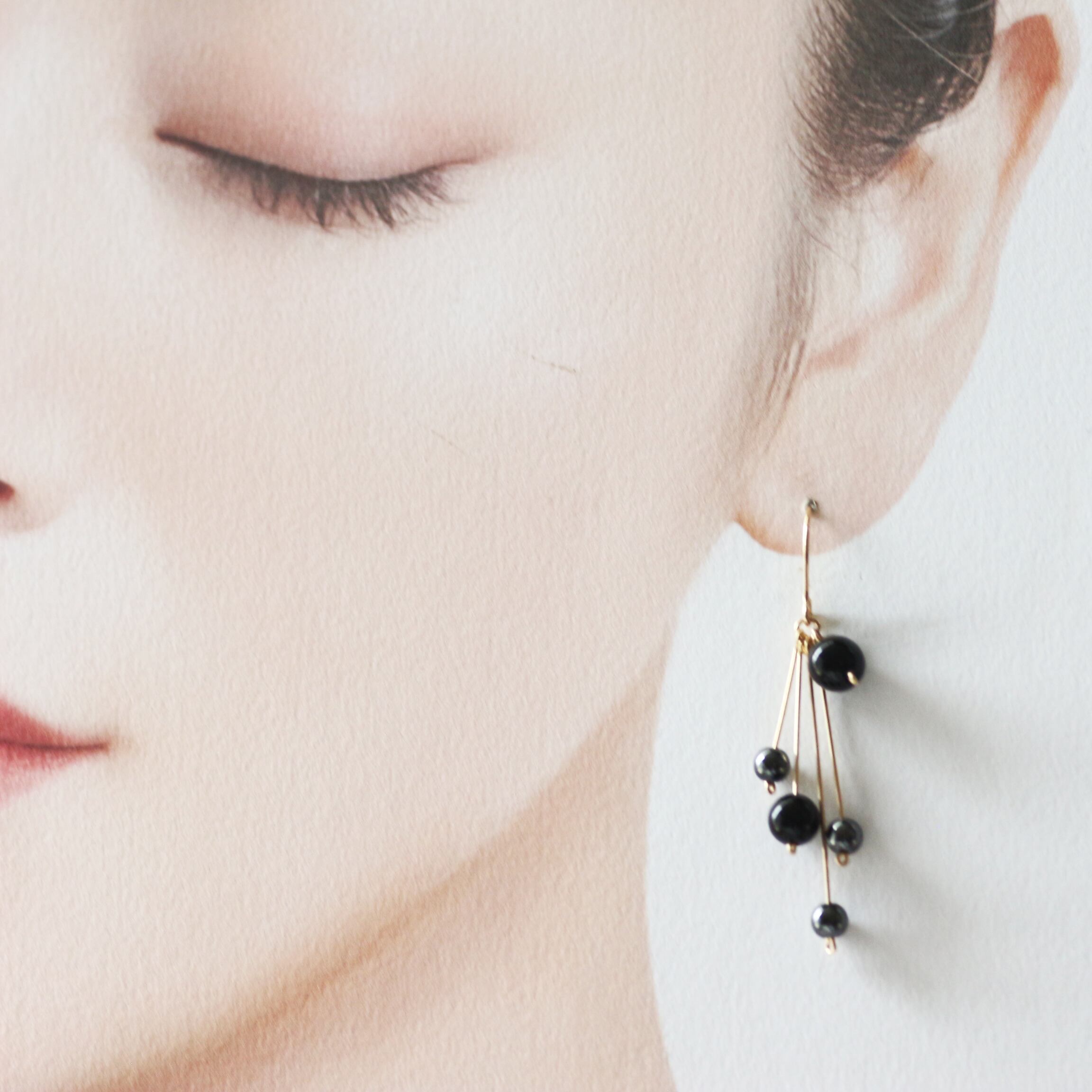 艶々に黒く輝くチタン&オニキスのシャワーピアス。