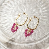 シャラシャラと揺れるたびに輝く、可愛いけれど落ち着いた大人色のミルキーピンクを耳元でお楽しみいただければと思います。