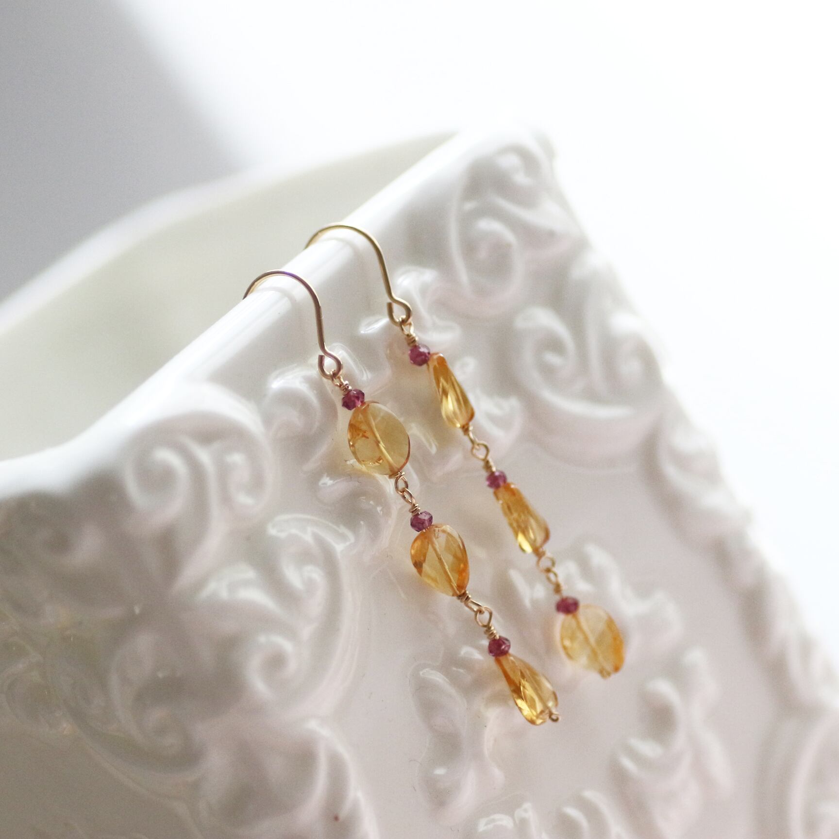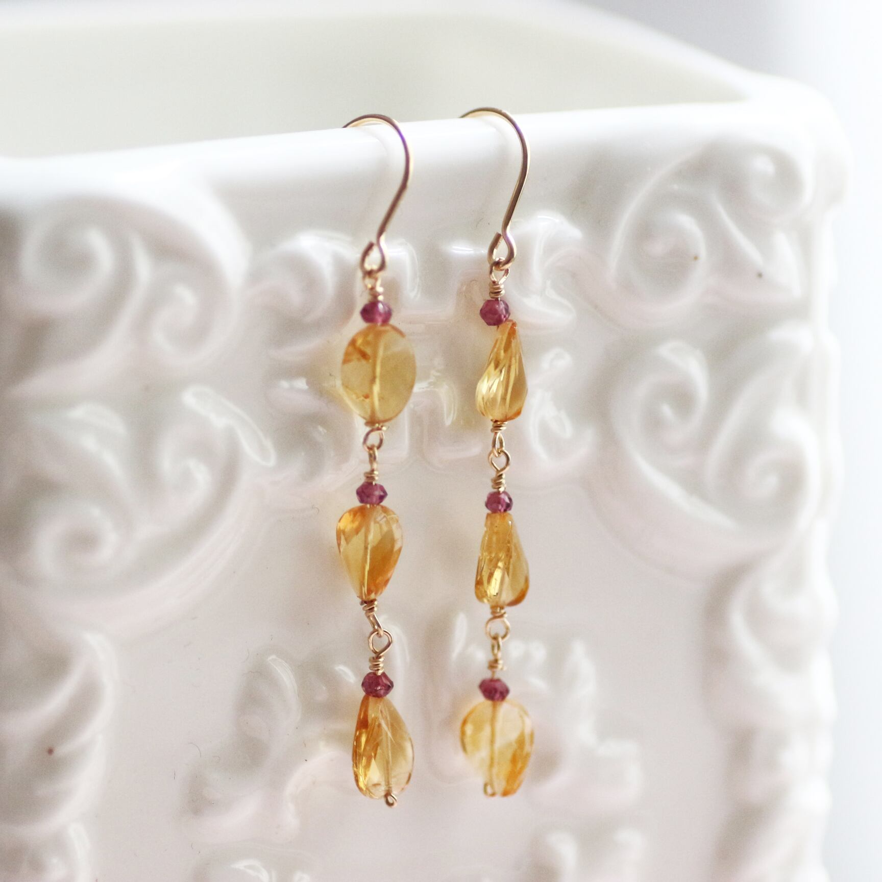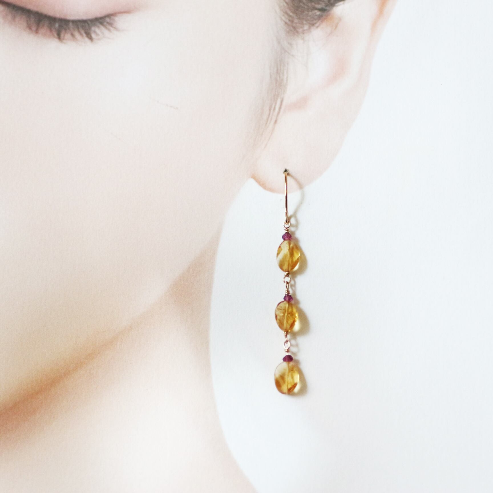 ーーーーーーーーーーーーーーーーーーーーーーーーーーーーーーーーーーーーーーーーーーーーーーーーーーーーーーーーーーーーーーーーーーーーーーーーーーーーK14gf ゴールドフィルド 天然石 ジュエリー アクセサリー カラーストーン ハンドメイド ギフト 11月 誕生石 落ち葉 枯葉 紅葉 秋色 ボルドーワイン色 黄金 琥珀色 セミロング 揺れる ピアス 上品 エレガント 可愛い 秋ギフト プレゼント ご褒美 デイリー 大人可愛い シトリン ロードライトガーネット イヤリング変更可能