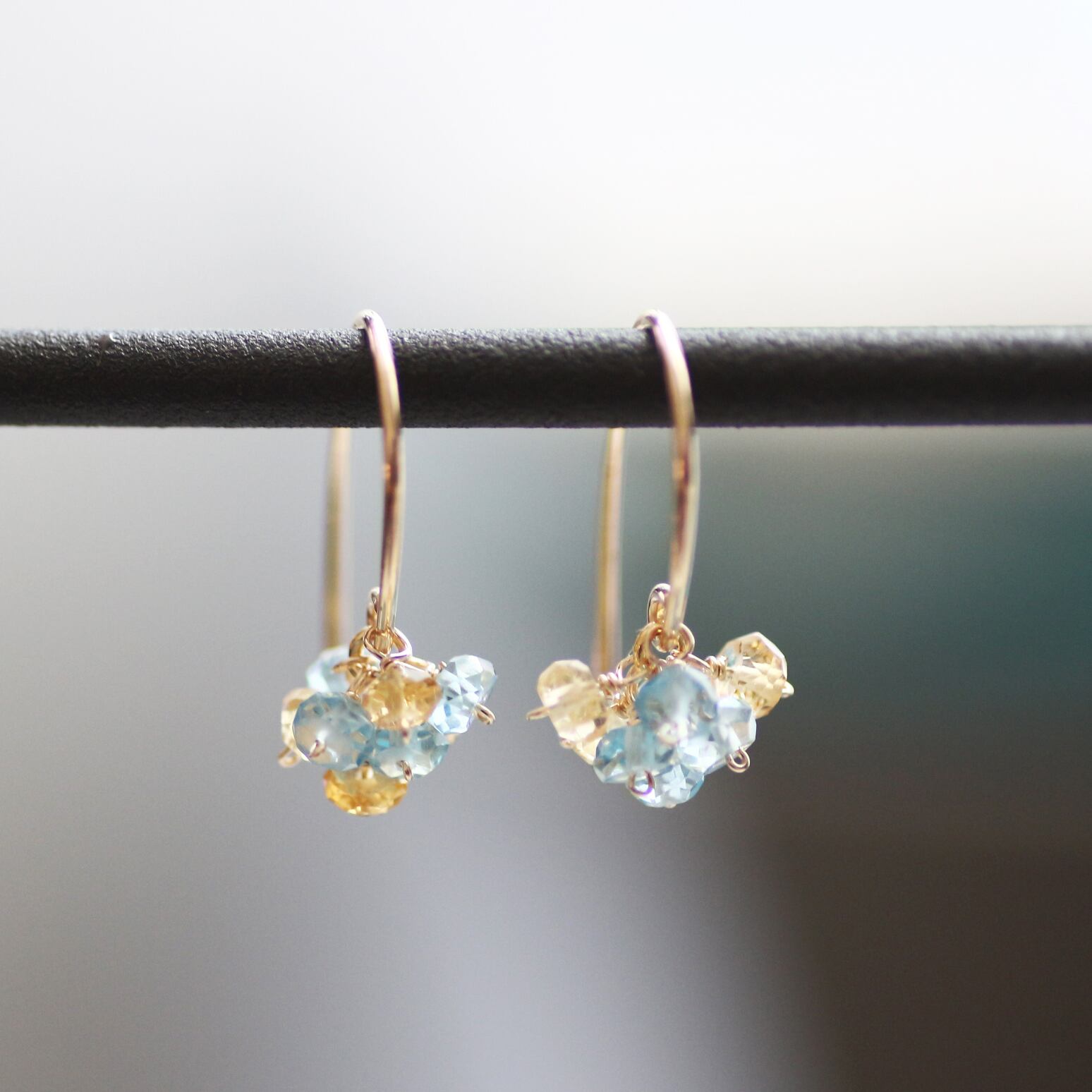 ーーーーーーーーーーーーーーーーーーーーーーーーーーーーーーーーーーーーーーーーーーーーーーーーーーーーーーーーーーーーーーーーーーーーーーーーーーーーK14gf ゴールドフィルド ステンレス ゴールドコーティング 天然石 ジュエリー アクセサリー カラーストーン ハンドメイド ギフト 秋色 オレンジ イエロー ブルー シトリン ブルートパーズ 11月誕生石 トパーズ 揺れる ピアス フックピアス アクセント エレガント 可愛い 秋ギフト プレゼント ご褒美 デイリー 大人可愛い