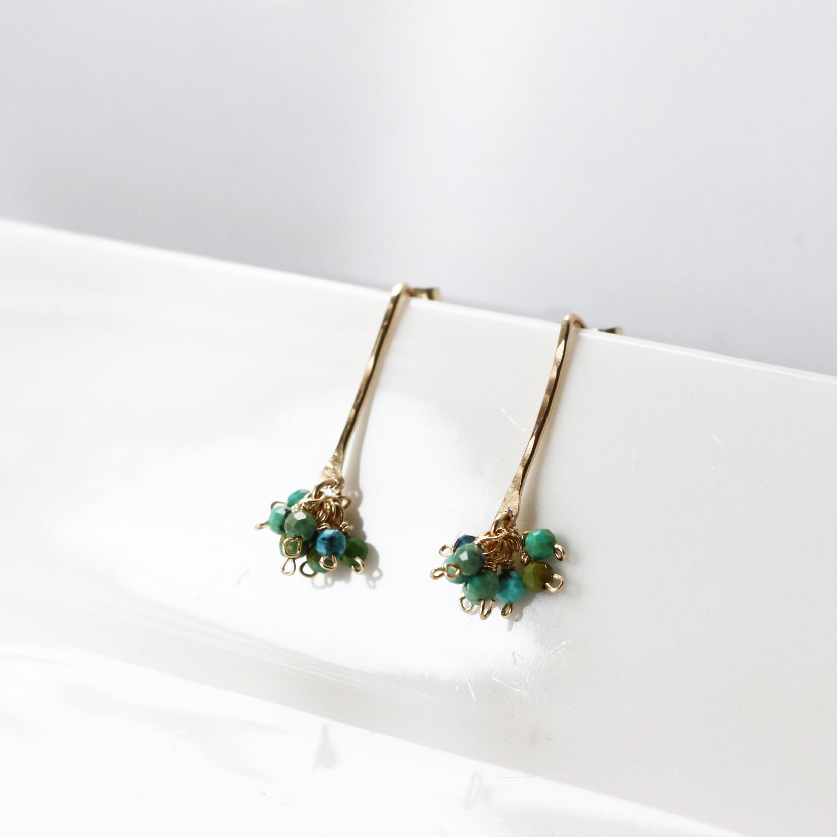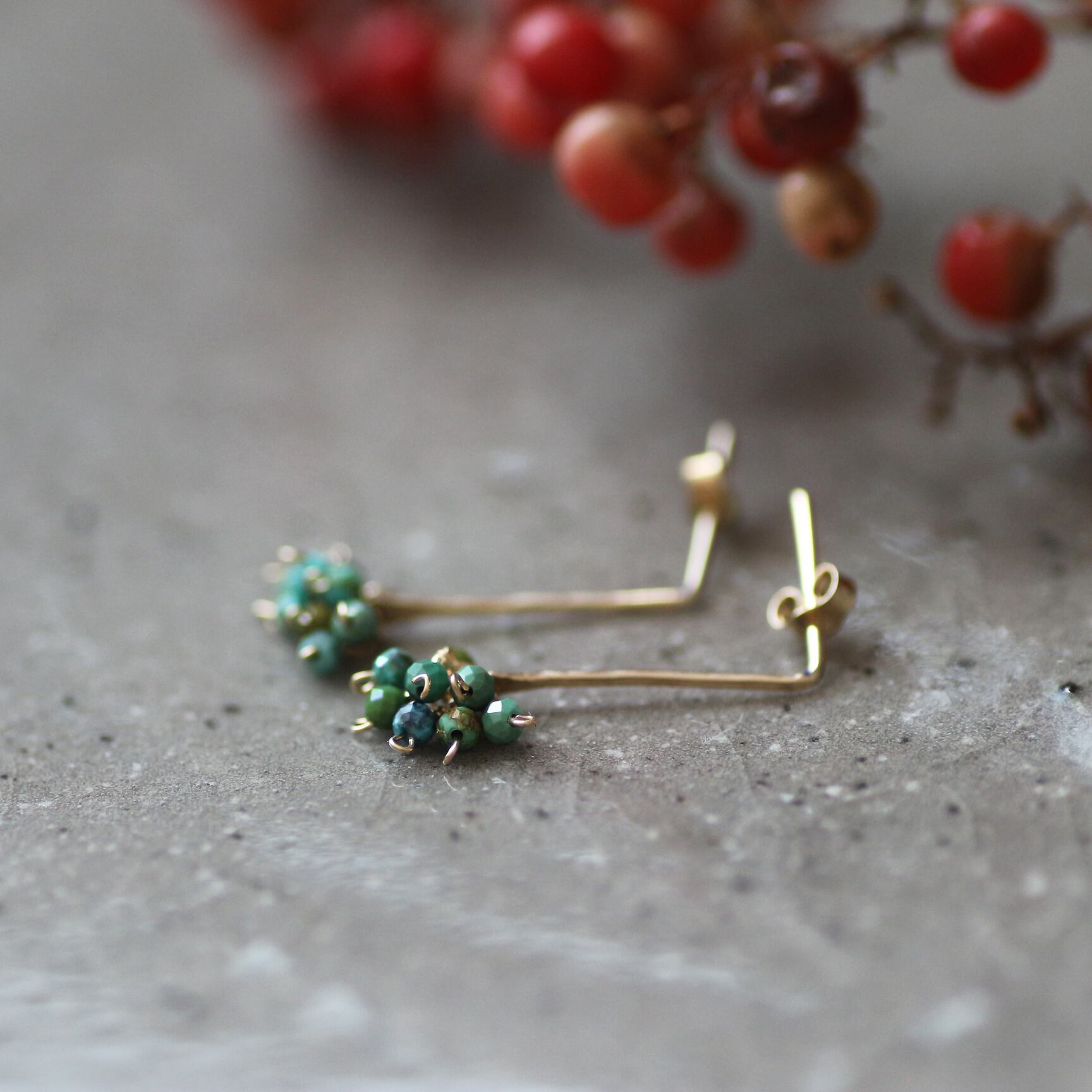 カット入りの極小天然ターコイズをぎゅっと集めた、シンプルだけどちょこっとアクセントにもなってくれそうなピアスです。