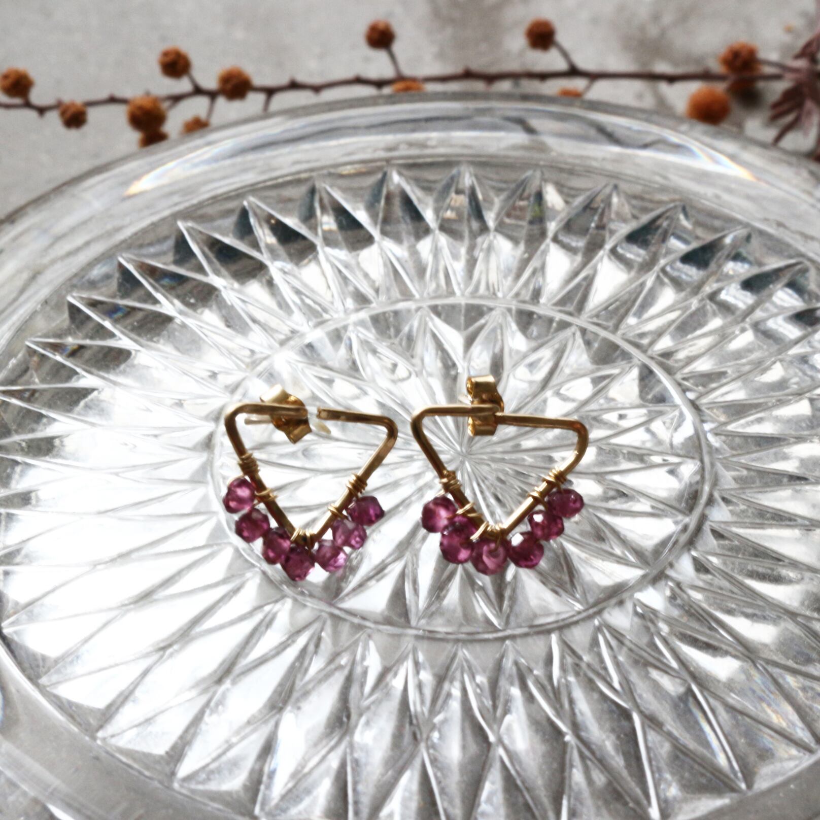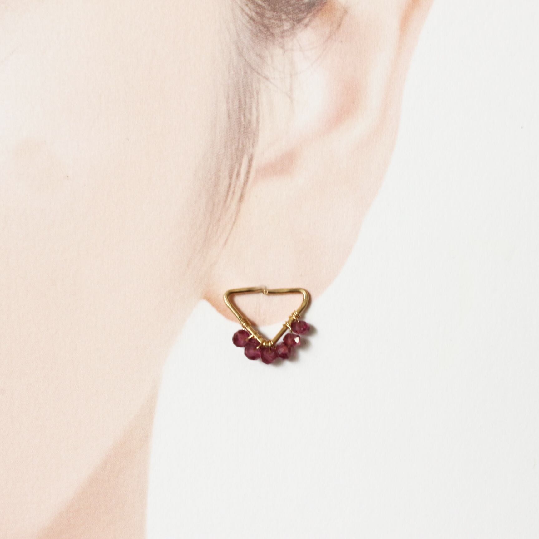 【ガーネット】トライアングル・フレームピアス